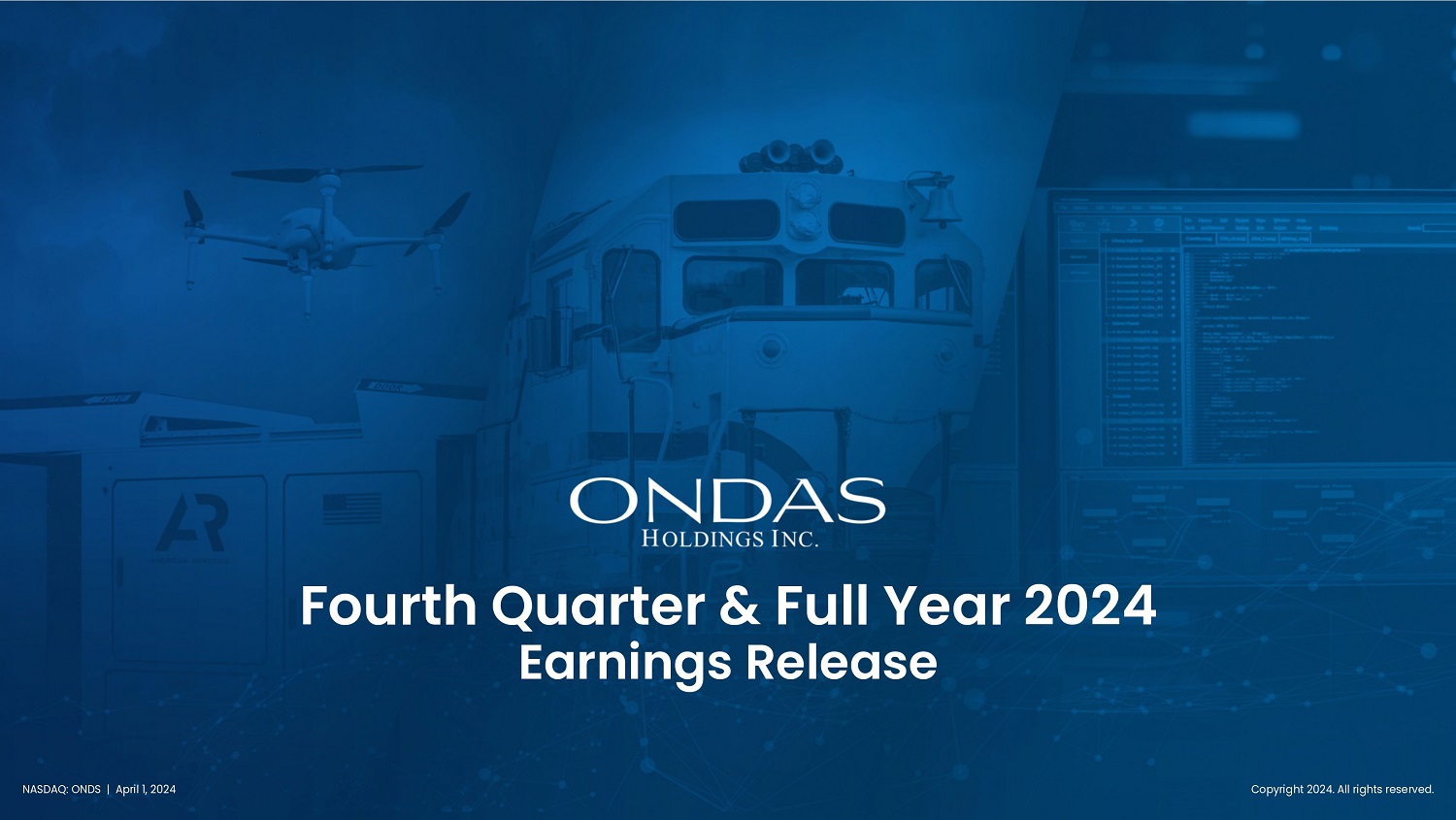 Nasdaq : ONDS Fourth Quarter & Full Year 202 ʧ Earnings Release Copyright 2024. All rights reserved. NASDAQ: ONDS | April 1, 2024