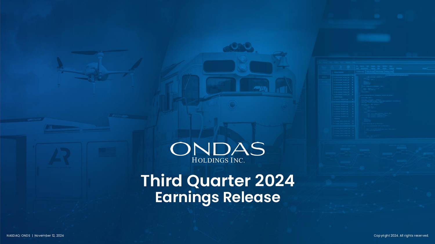 Third Quarter 202 4 Earfiifigs Release Copyright 2024. All rights reserved. N A S D A Q : O N D S | N o v e m b e r 1 2 , 2 0 2 4