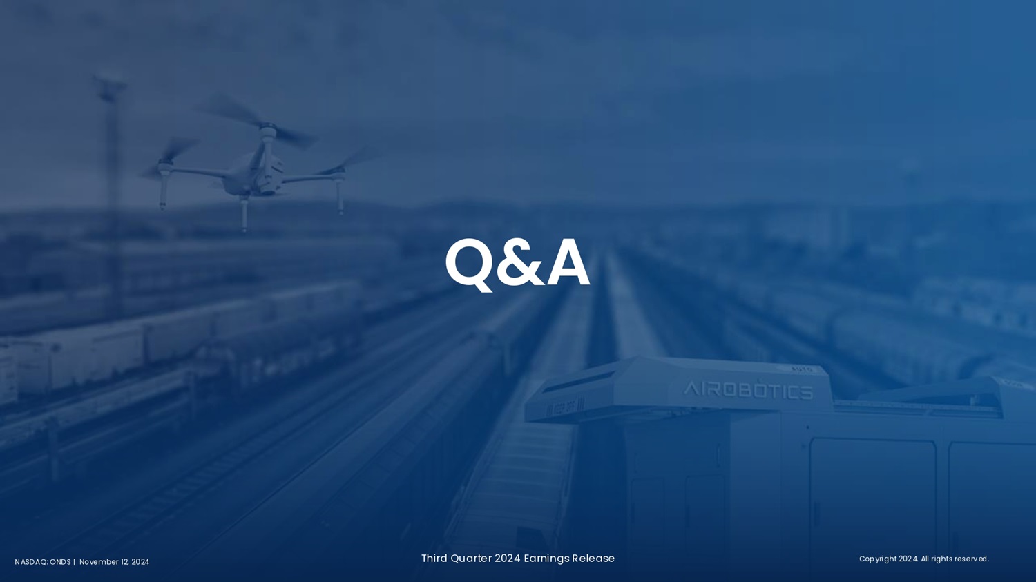 Third Quarter 2024 Earnings Release N A S D A Q : O N D S | N ov e m b e r 1 2 , 2 0 2 4 Q & A C o p y r i g h t 2 02 4 . A l l r i g h t s r e s e r v e d .