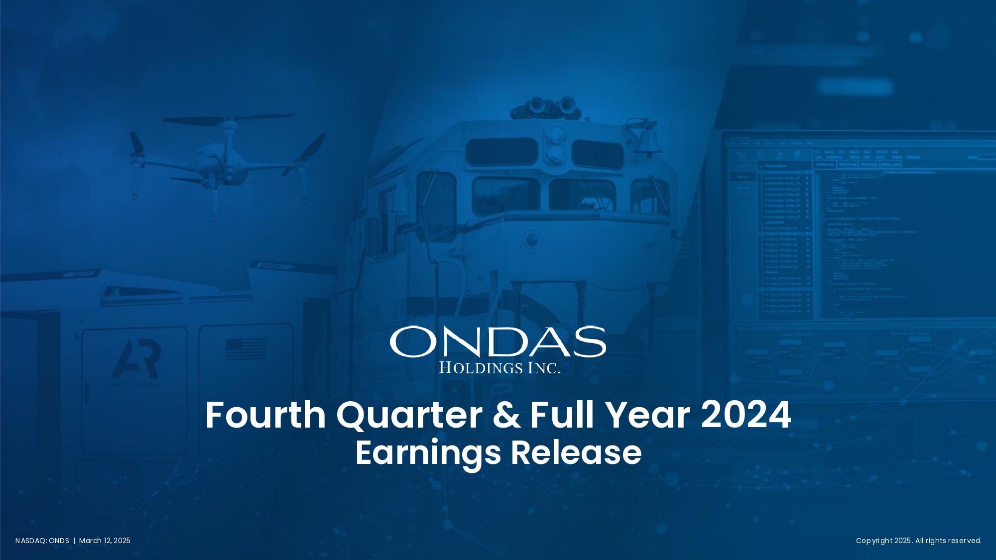 Fourth Qu6rter & Full Ye6r 2024 E6rfiifigs Rele6se Copyright 2025. All rights reserved. NASDAQ: ONDS | March 12, 2025