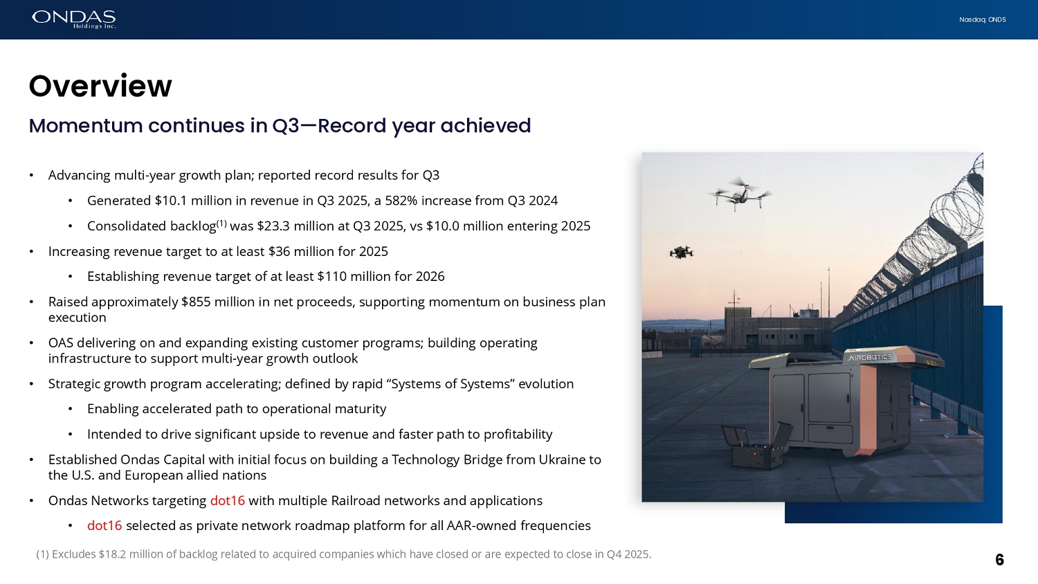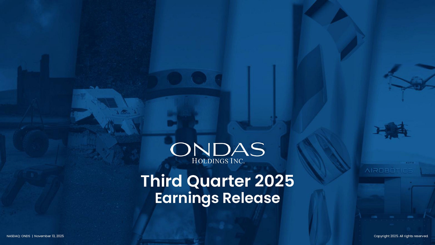 Nasdaq: ONDS 1 Third Qu6rter 2025 E6rfiifigs Rele6se Copyright 2025. All rights reserved. NASDAQ: ONDS | November 13, 2025
