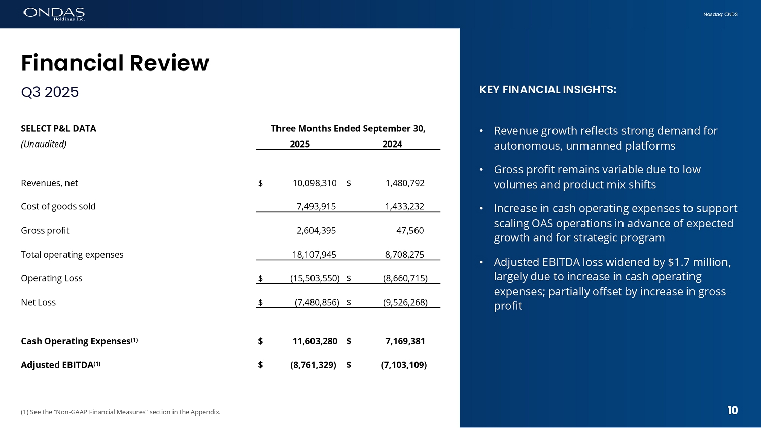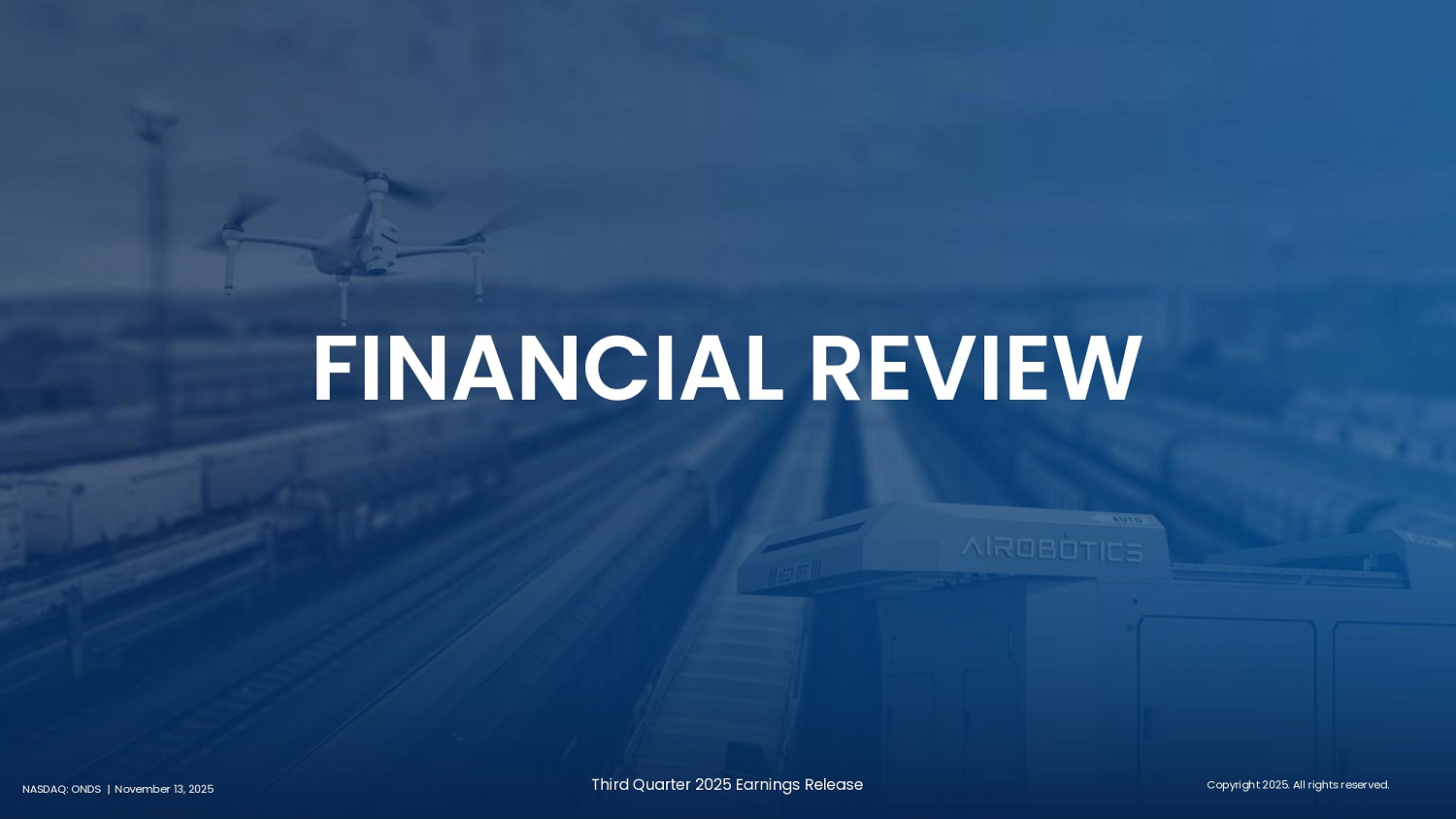 Nasdaq: ONDS 9 Third Quarter 2025 Earnings Release FINANCIAL REVIEW Copyright 2025. All rights reserved. NASDAQ: ONDS | November 13, 2025
