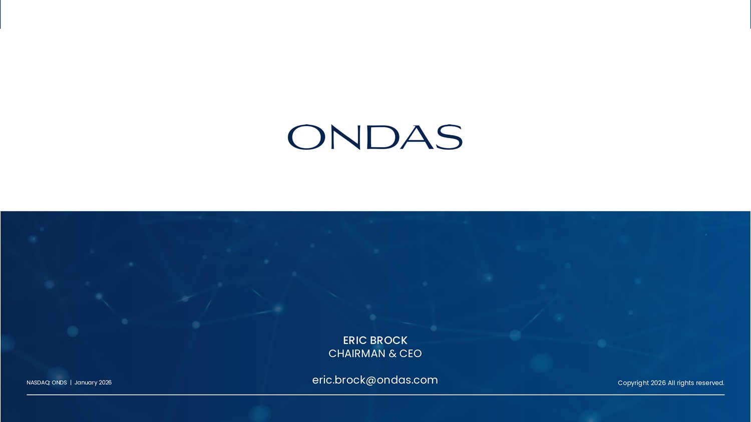 Nasdaq: ONDS ERIC BROCK CHAIRMAN & CEO eric.brock@ondas.com Copyright 2026 All rights reserved. NASDAQ: ONDS | January 2026