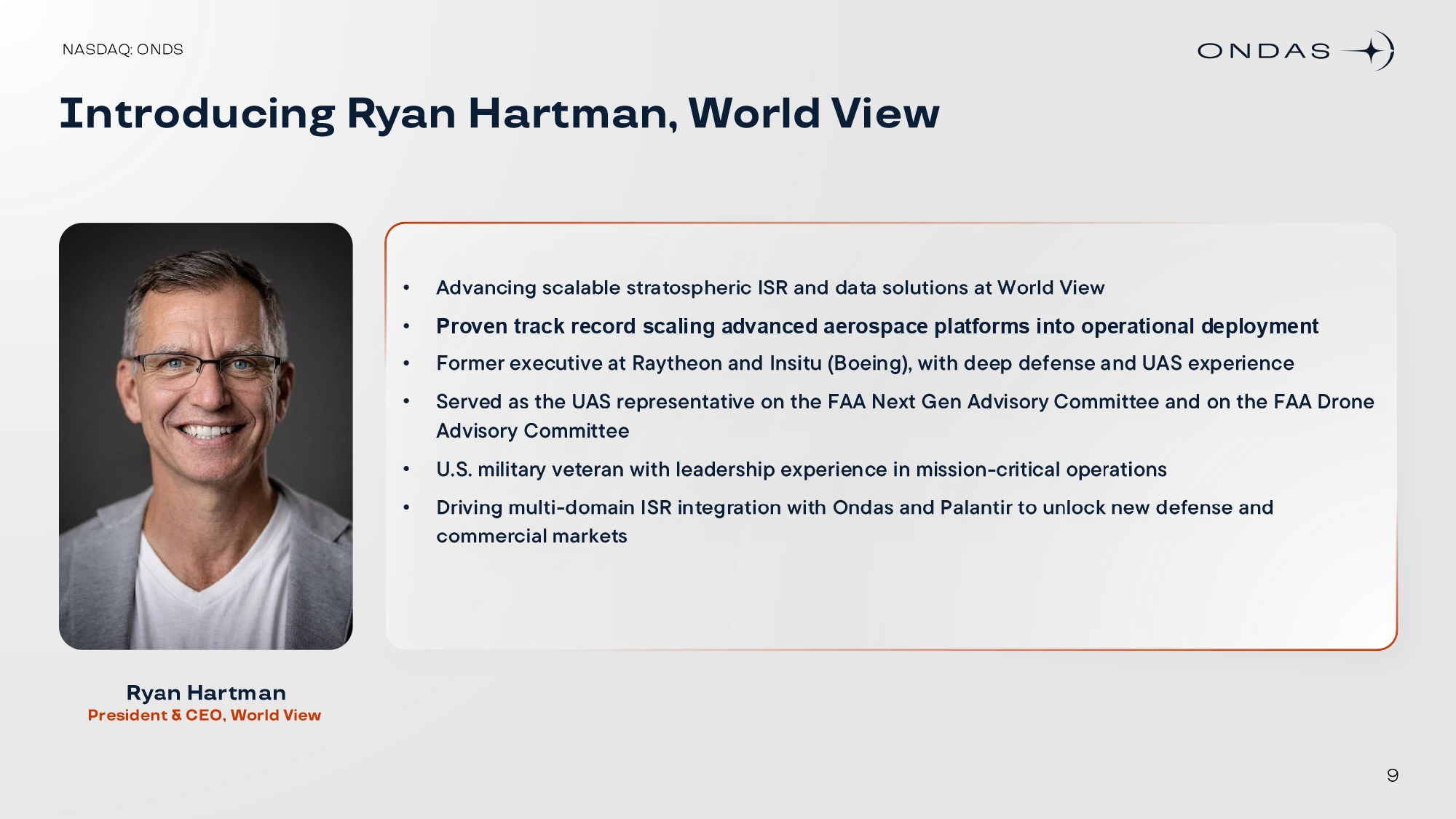 • • Proven track record scaling advanced aerospace platforms into operational deployment • • • •