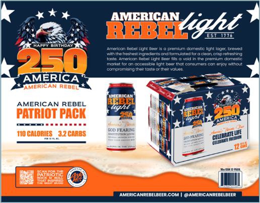 American Rebel is now accepting pre-orders for the 250th Anniversary Patriot Pack from distributors and retailers nationwide. Wholesalers are encouraged to reserve their allotments early, as this limited run will ship in time for Memorial Day 2026 and the peak of America’s 250th Birthday celebrations. The Patriot Pack will be distributed across American Rebel Light Beer’s expanding network in current markets (with additional distributor details to follow in a forthcoming update).