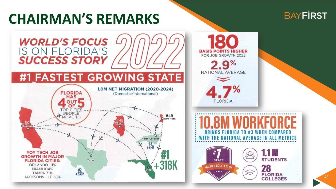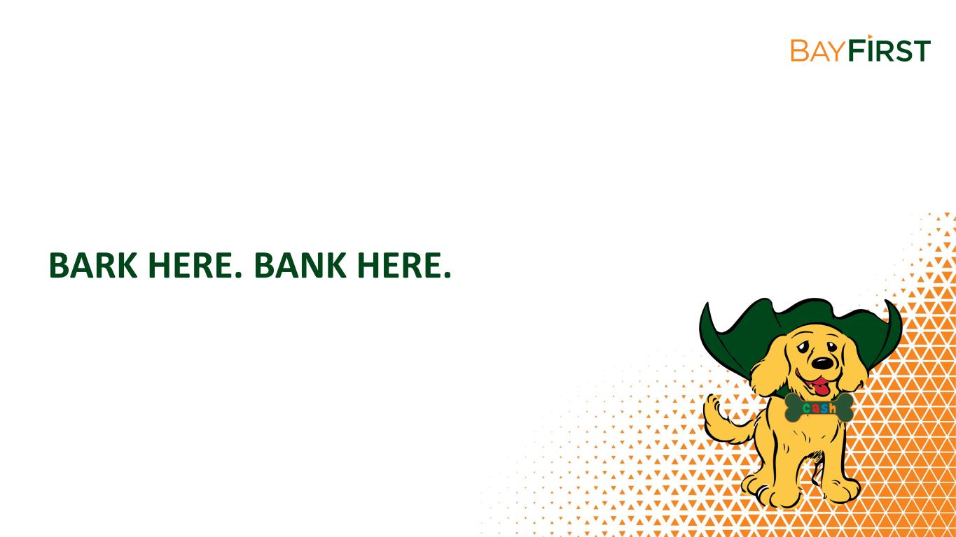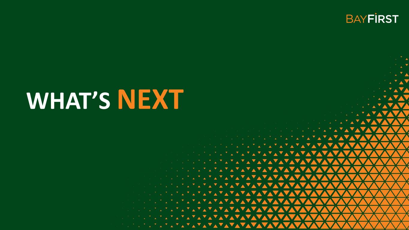 EXPANDING BANKING CENTER NETWORK CURRENT BANKING CENTER LOCATIONS FUTURE BANKING CENTER LOCATIONS Seminole 1999 Pinellas Park 2005 Countryside 2018 St. Petersburg 2017 Downtown Sarasota 2018 West Tampa 2021 Belleair Bluffs 2022 West Bradenton 2022 Carrollwood 2023 Bee Ridge Sarasota 2023 S. Tamiami Trail Sarasota 2023 Lakewood Ranch TBD Newtown Sarasota 2023