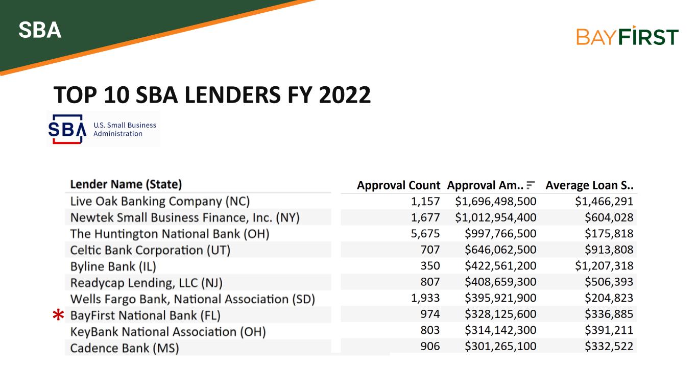 TOP 10 SBA LENDERS FY 2022 * SBA