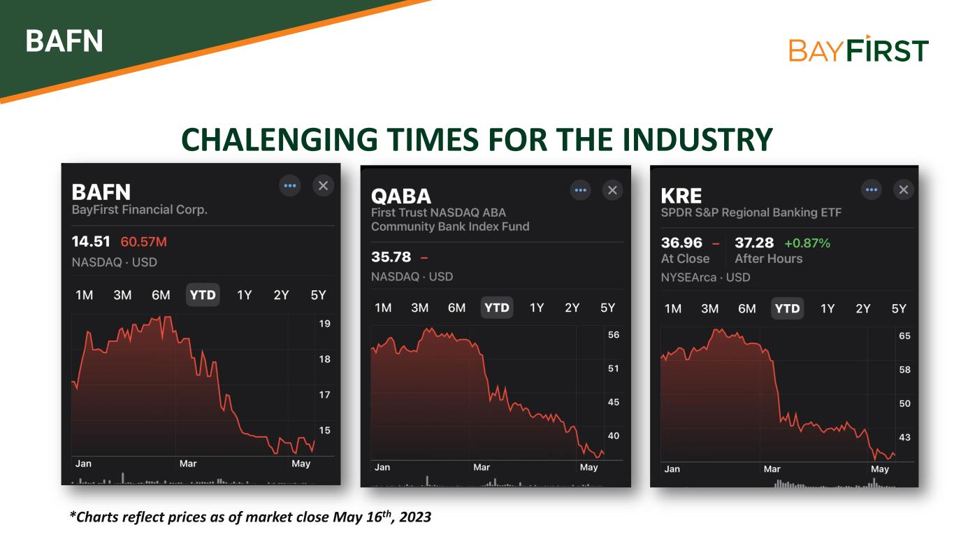 CHALENGING TIMES FOR THE INDUSTRY *Charts reflect prices as of market close May 16th, 2023 BAFN