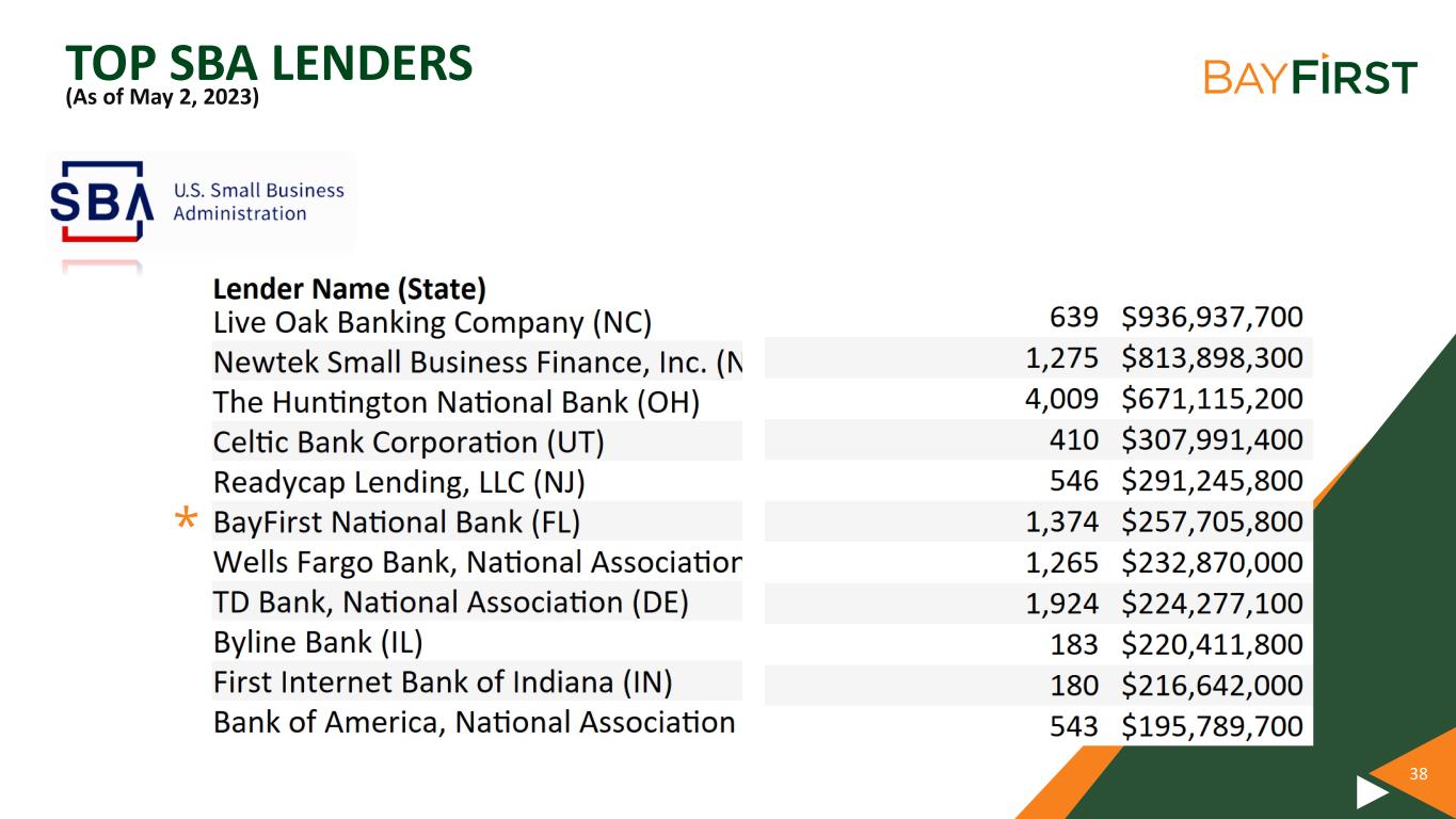 38 TOP SBA LENDERS (As of May 2, 2023) *