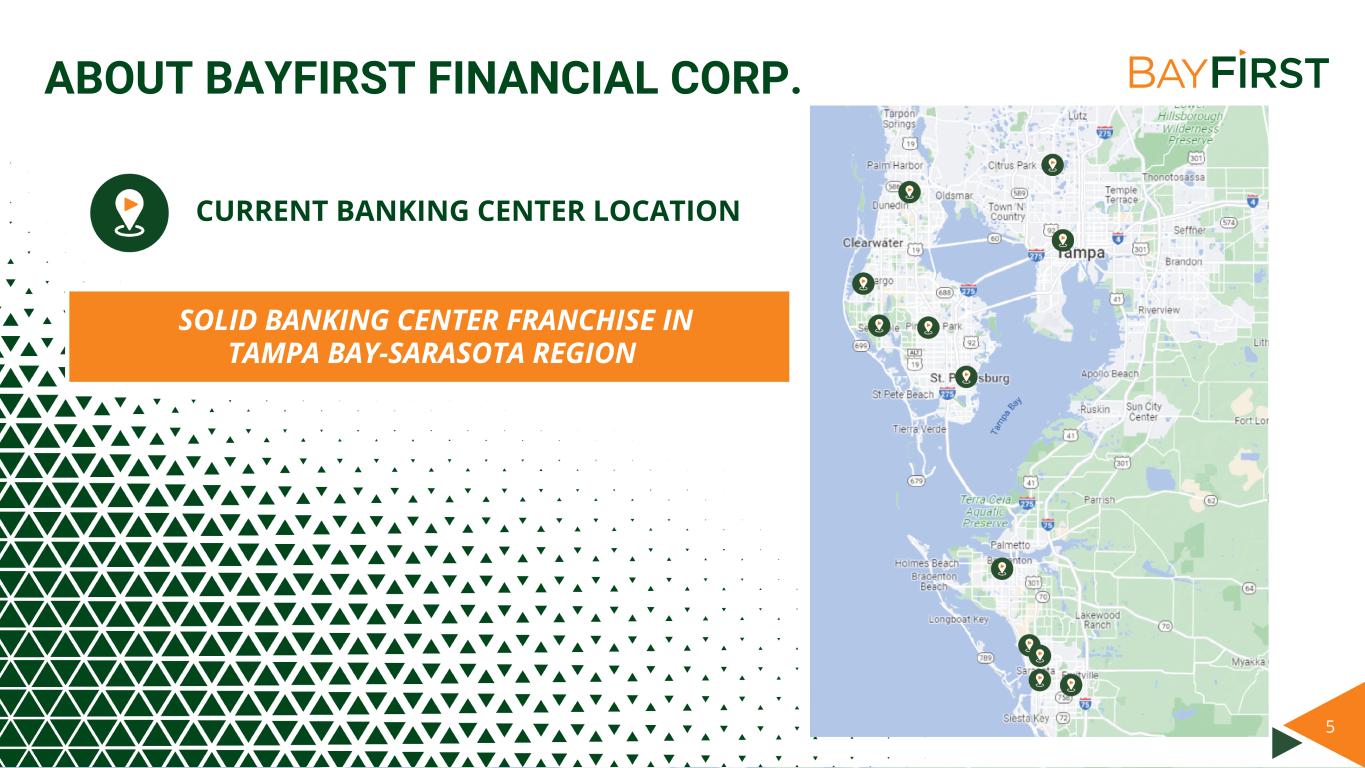 55 ABOUT BAYFIRST FINANCIAL CORP. CURRENT BANKING CENTER LOCATION SOLID BANKING CENTER FRANCHISE IN TAMPA BAY-SARASOTA REGION
