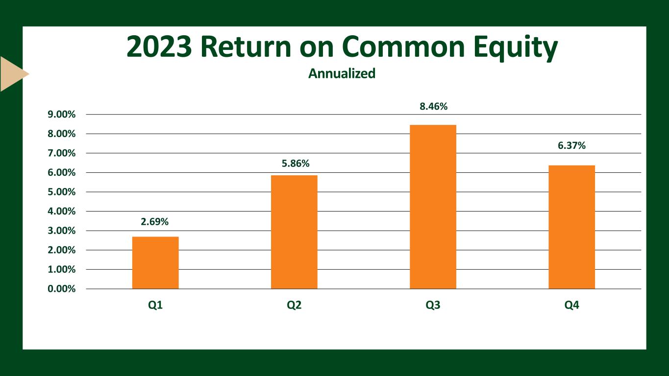 2023 Return on Common Equity Annualized 2.69% 5.86% 8.46% 6.37% 0.00% 1.00% 2.00% 3.00% 4.00% 5.00% 6.00% 7.00% 8.00% 9.00% Q1 Q2 Q3 Q4