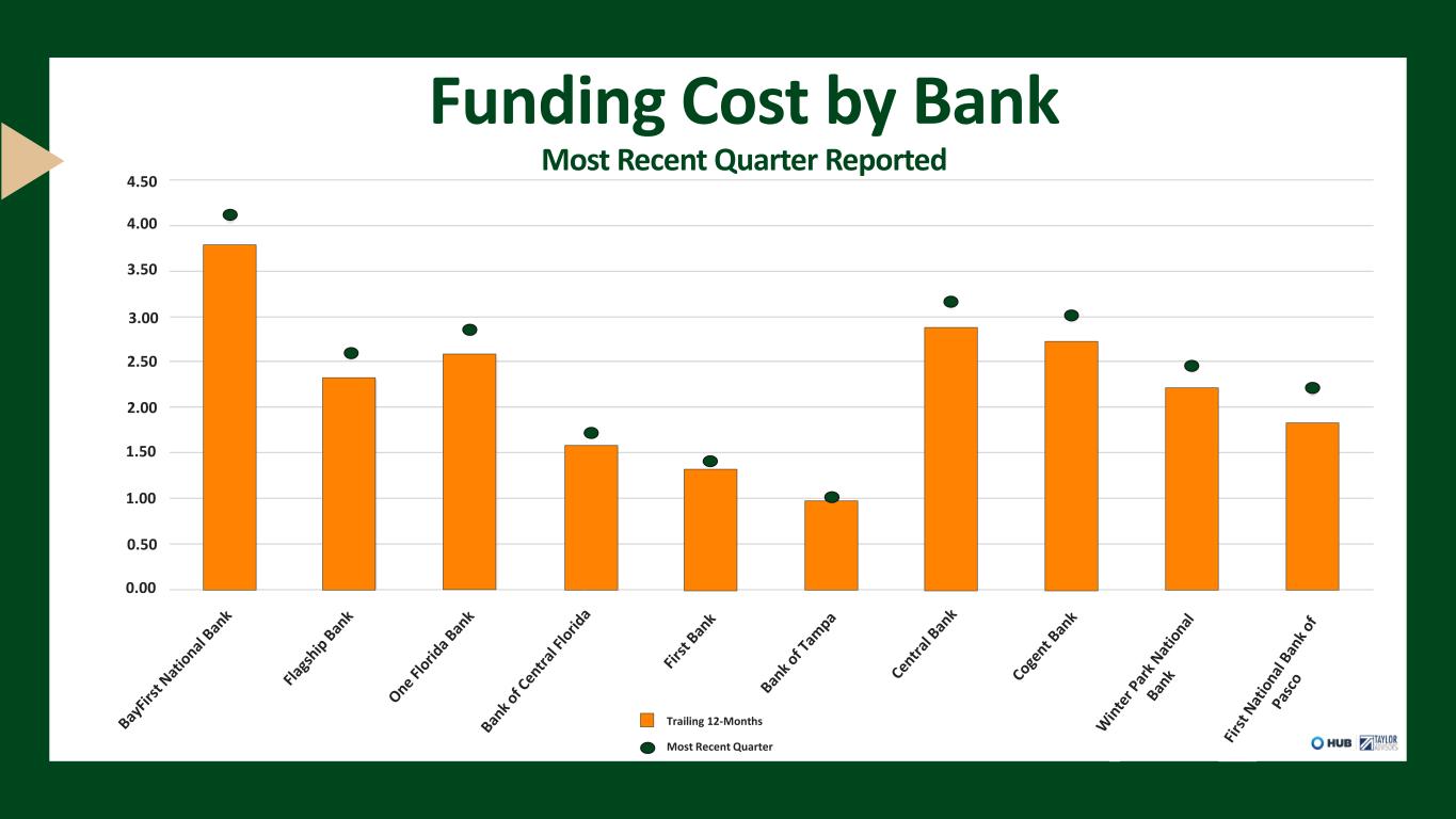 Funding Cost by Bank Most Recent Quarter Reported 0.00 0.50 1.00 2.00 3.00 4.00 1.50 2.50 3.50 4.50 Trailing 12-Months Most Recent Quarter