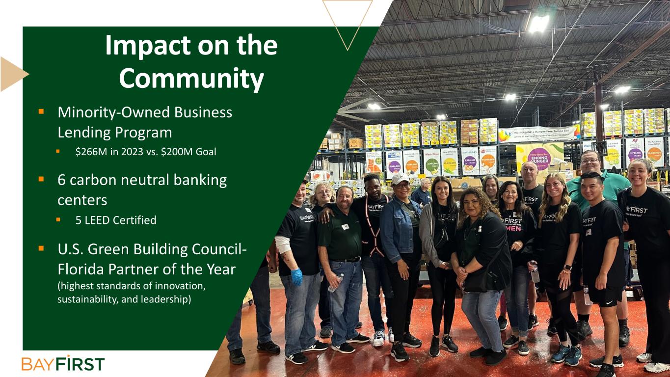  Minority-Owned Business Lending Program  $266M in 2023 vs. $200M Goal  6 carbon neutral banking centers  5 LEED Certified  U.S. Green Building Council- Florida Partner of the Year (highest standards of innovation, sustainability, and leadership) Impact on the Community