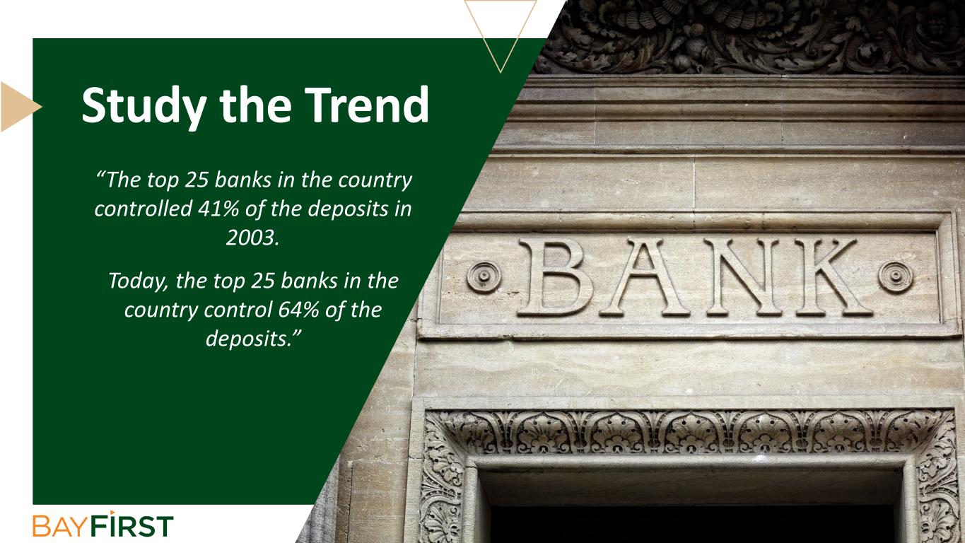 “The top 25 banks in the country controlled 41% of the deposits in 2003. Today, the top 25 banks in the country control 64% of the deposits.” Study the Trend