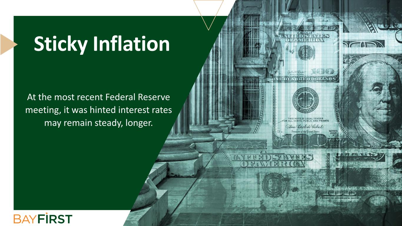 At the most recent Federal Reserve meeting, it was hinted interest rates may remain steady, longer. Sticky Inflation