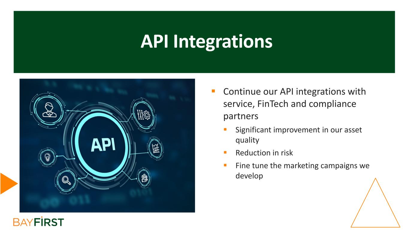 API Integrations  Continue our API integrations with service, FinTech and compliance partners  Significant improvement in our asset quality  Reduction in risk  Fine tune the marketing campaigns we develop