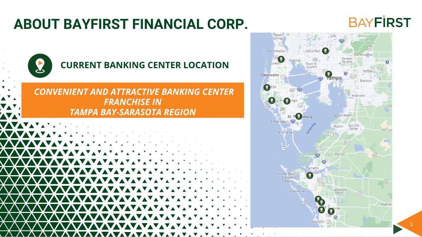 55 ABOUT BAYFIRST FINANCIAL CORP. CURRENT BANKING CENTER LOCATION CONVENIENT AND ATTRACTIVE BANKING CENTER FRANCHISE IN TAMPA BAY-SARASOTA REGION