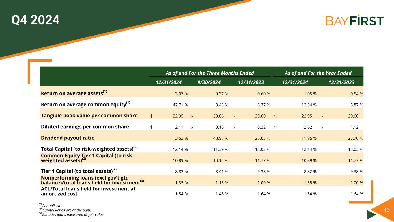 BayFirst Financial Corp. (NASDAQ:BAFN) 2024 – Fourth Quarter Results (Unaudited)