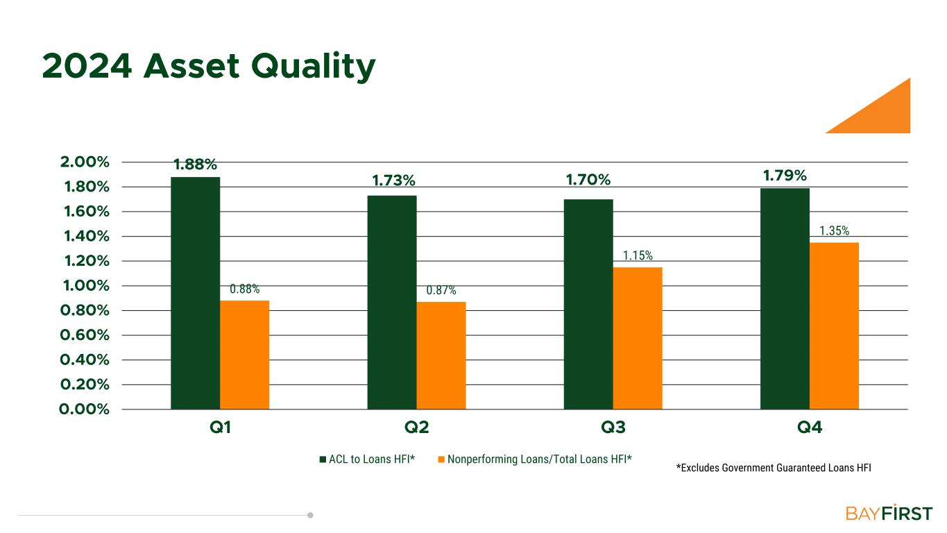 0.88% 0.87% 1.15% 1.35% ACL to Loans HFI* Nonperforming Loans/Total Loans HFI* *Excludes Government Guaranteed Loans HFI