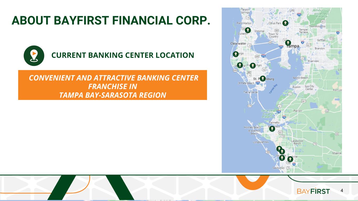 4 ABOUT BAYFIRST FINANCIAL CORP. CURRENT BANKING CENTER LOCATION CONVENIENT AND ATTRACTIVE BANKING CENTER FRANCHISE IN TAMPA BAY-SARASOTA REGION