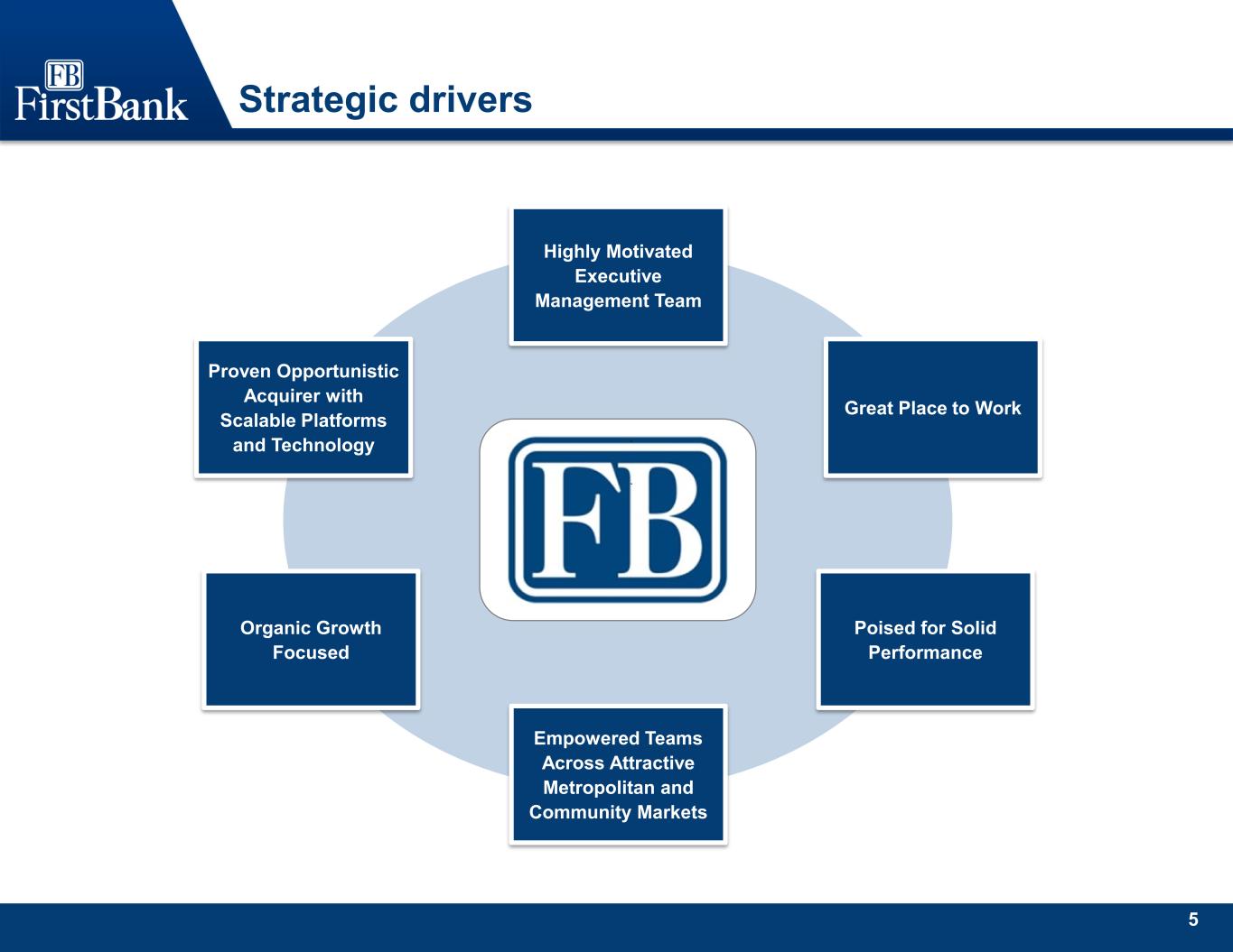 5 Strategic drivers Poised for Solid Performance Proven Opportunistic Acquirer with Scalable Platforms and Technology Highly Motivated Executive Management Team Great Place to Work Organic Growth Focused Empowered Teams Across Attractive Metropolitan and Community Markets
