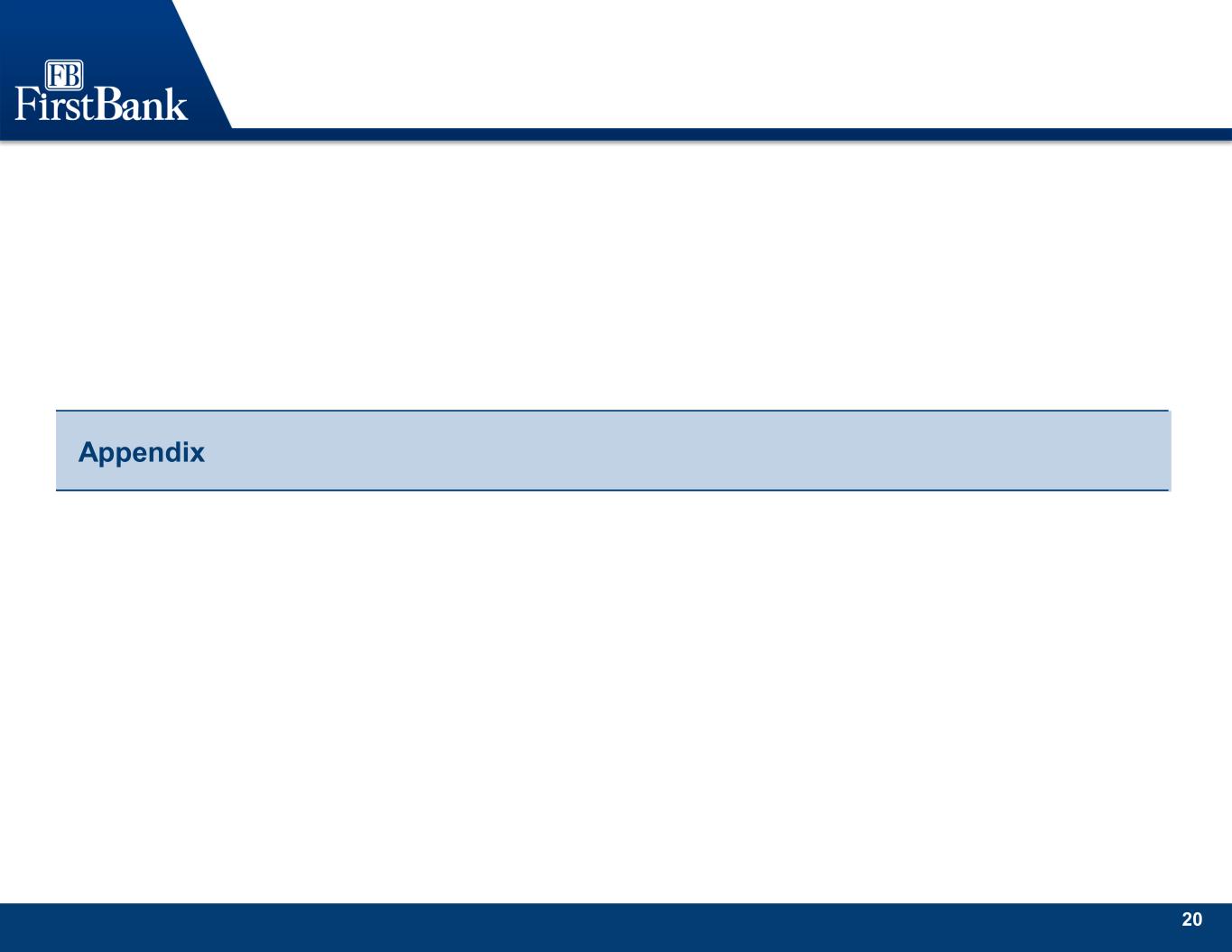 19 FBK & SSBK Combination Status  Deal announced on March 31, 2025  Integration office established & actively leading project  Teams from both institutions collaborating daily  Workstreams on-target for Q3 combination (pending customary approvals) Strategically Compelling • Furthers FB Financial’s expansion strategy into high value contiguous markets • Creates one of the highest performing banking franchises in the Southeast’s best markets • Combines two well-operated banks with strong cultural and business model alignment Financially Attractive • Compelling earnings accretion – low double-digit accretion with fully realized cost savings • Top quartile profitability amongst peers • Manageable tangible book value dilution, earned back in under two years • Strong pro forma capital ratios with loan concentrations well below industry guidelines Positioned for Future Success • Southern States’ conservative underwriting and strong historical asset quality mitigate risk • Thorough due diligence process • Powerful combination for shareholders, employees, customers, and communities Pro Forma Footprint