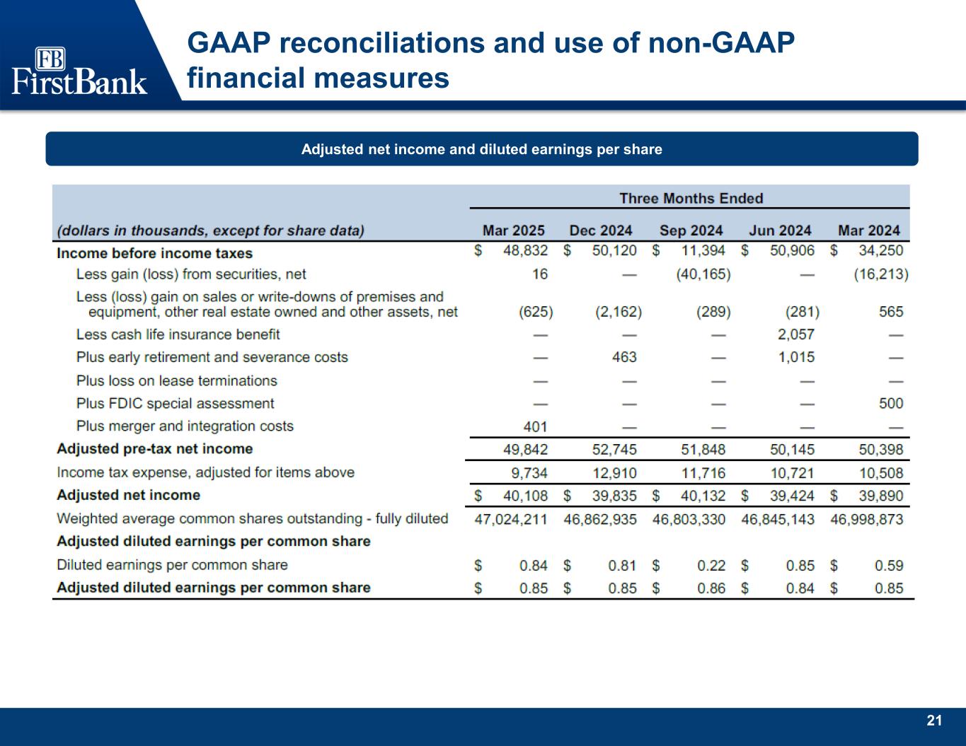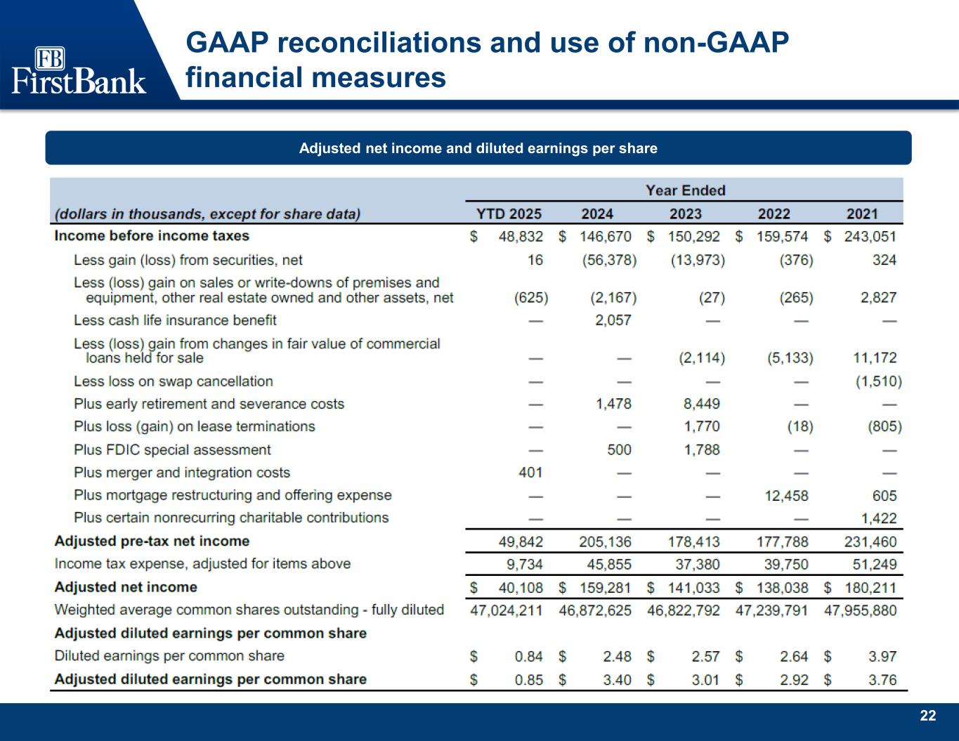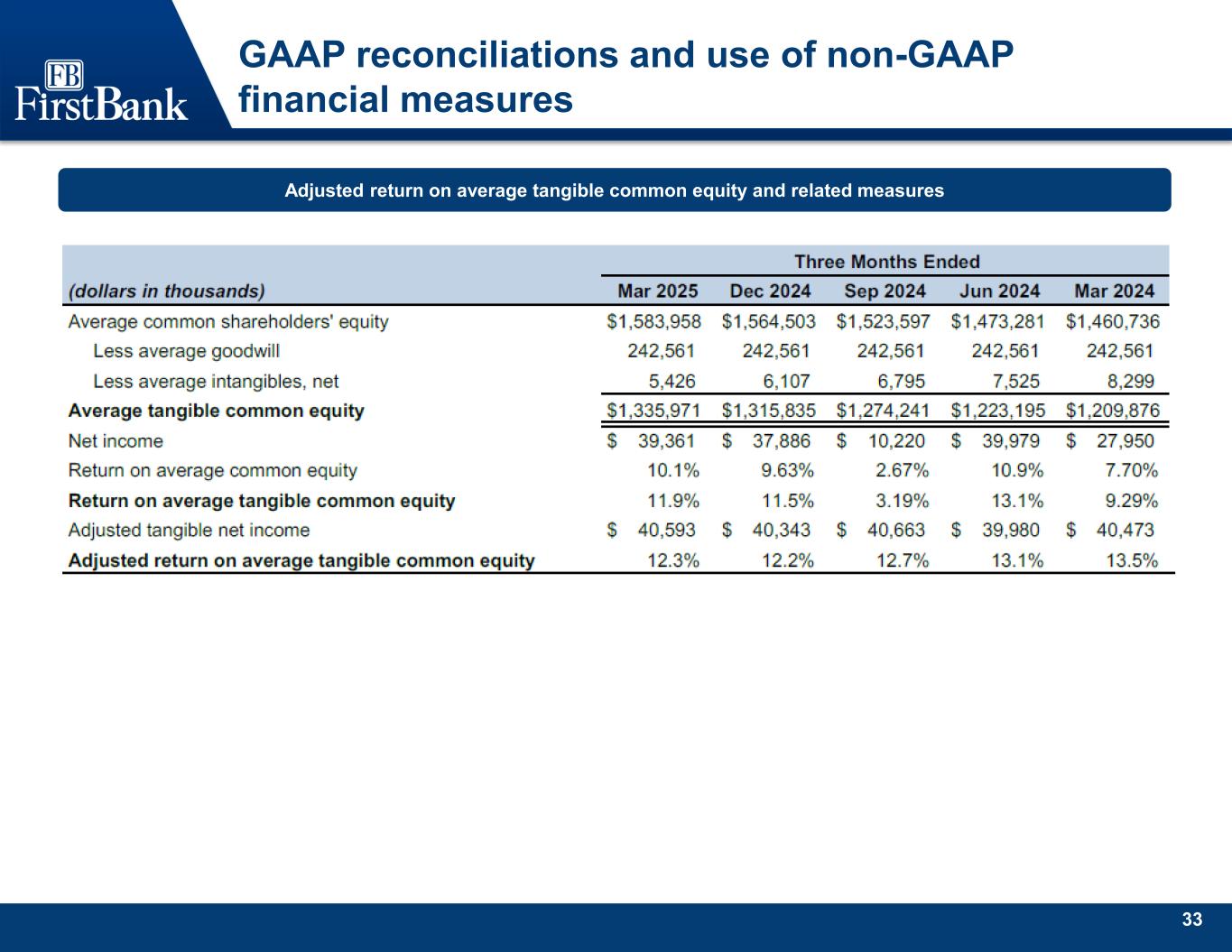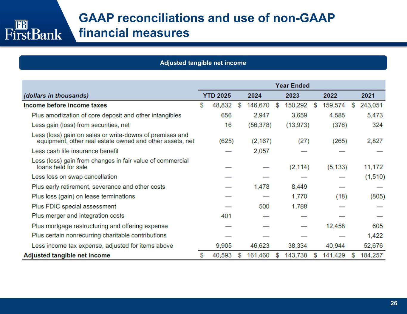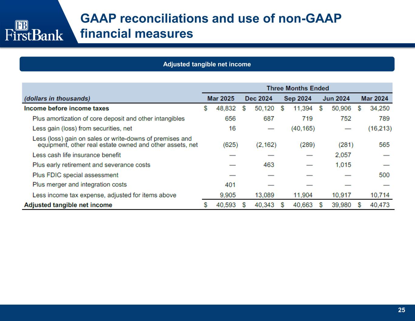 25 GAAP reconciliations and use of non-GAAP financial measures Adjusted tangible net income