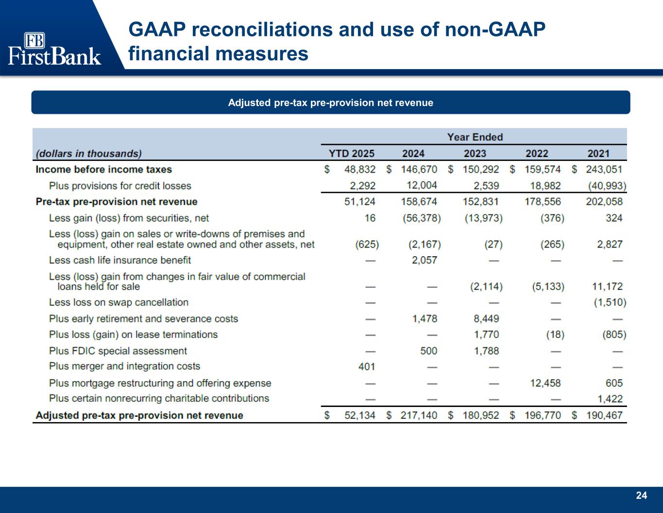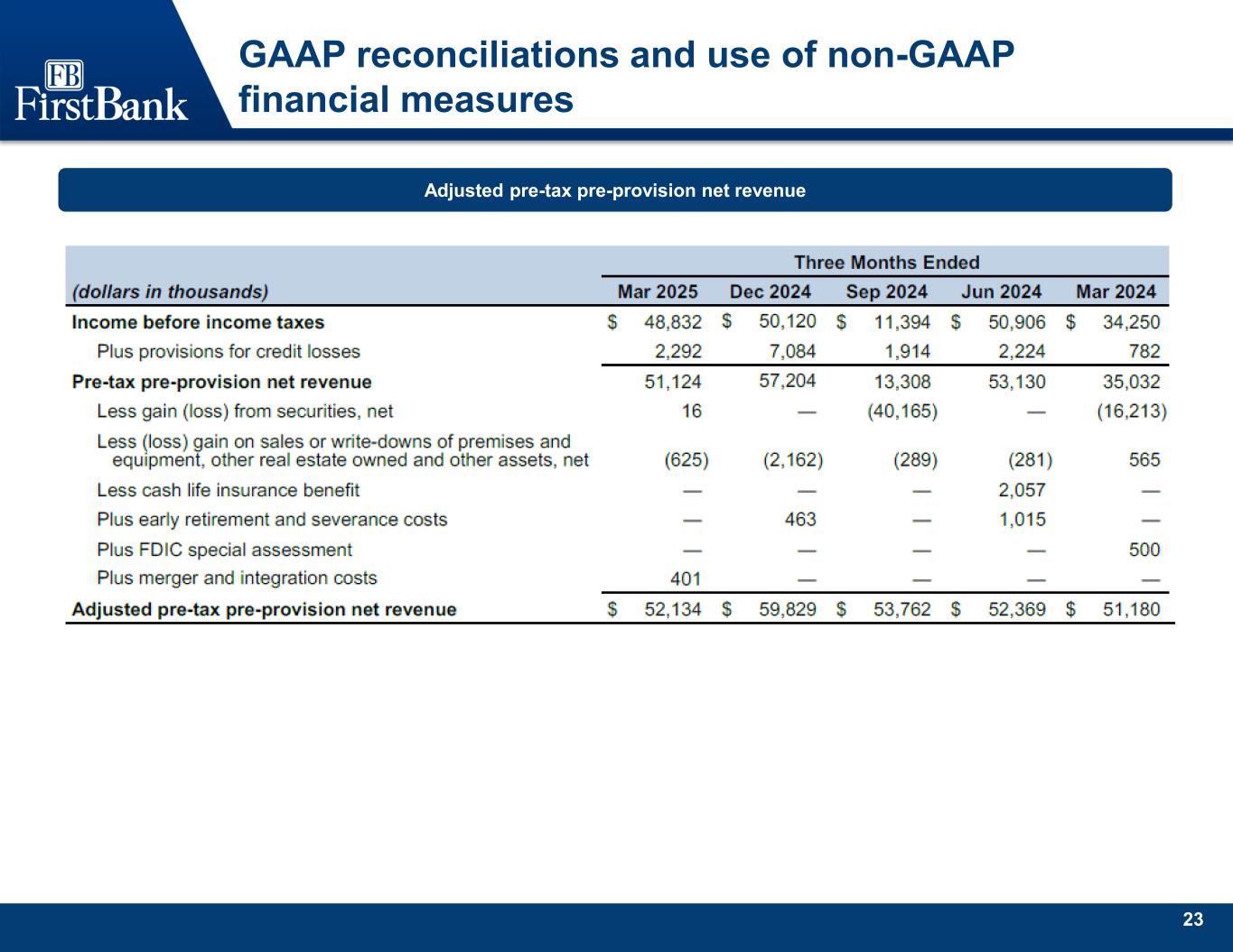 24 GAAP reconciliations and use of non-GAAP financial measures Adjusted pre-tax pre-provision net revenue