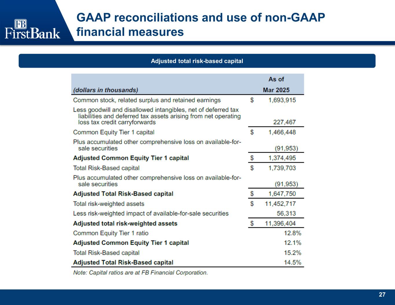 26 GAAP reconciliations and use of non-GAAP financial measures Adjusted tangible net income