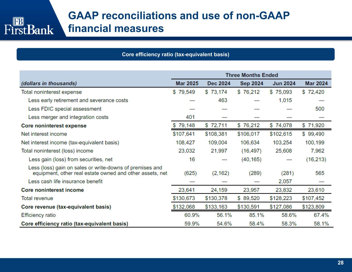 28 GAAP reconciliations and use of non-GAAP financial measures Core efficiency ratio (tax-equivalent basis)