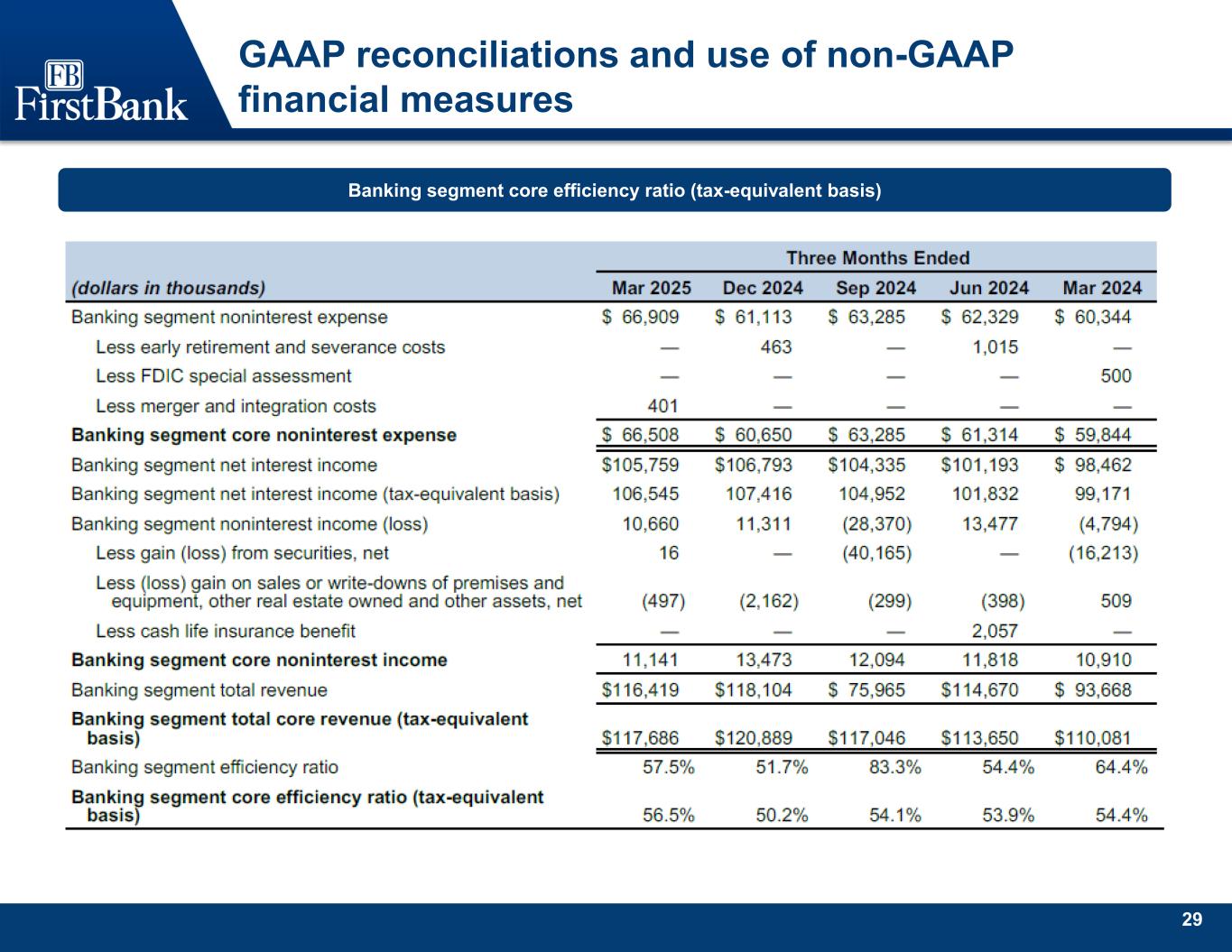 29 GAAP reconciliations and use of non-GAAP financial measures Banking segment core efficiency ratio (tax-equivalent basis)