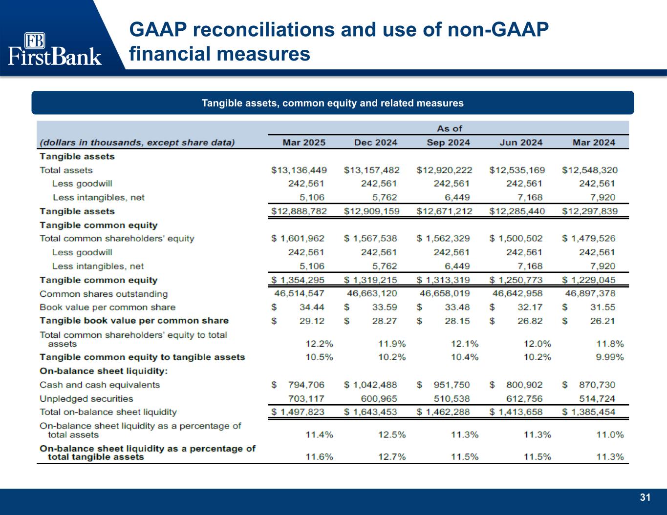31 GAAP reconciliations and use of non-GAAP financial measures Tangible assets, common equity and related measures