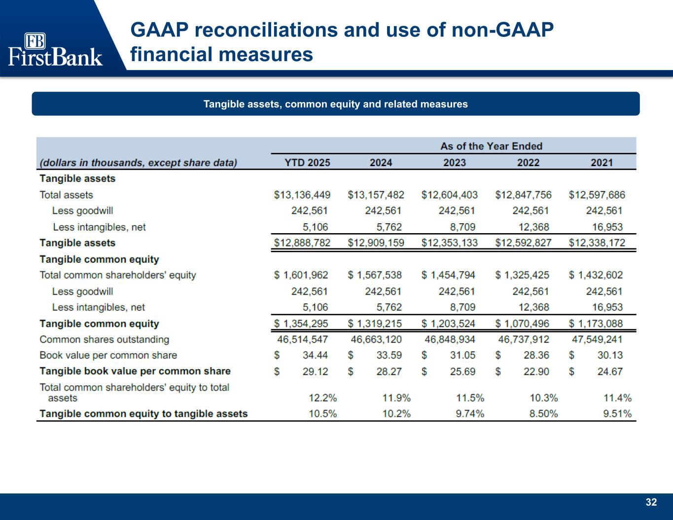 32 GAAP reconciliations and use of non-GAAP financial measures Tangible assets, common equity and related measures