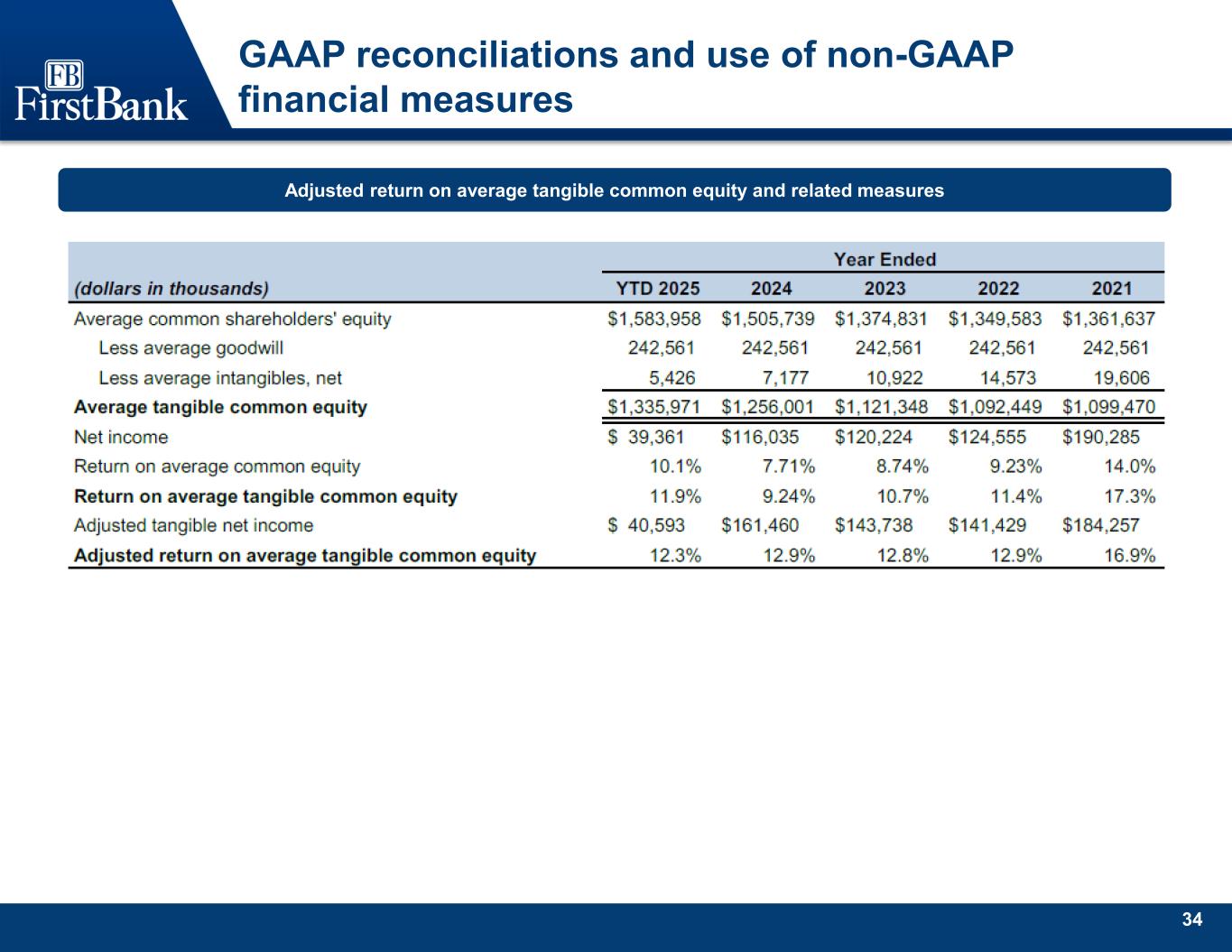 34 GAAP reconciliations and use of non-GAAP financial measures Adjusted return on average tangible common equity and related measures
