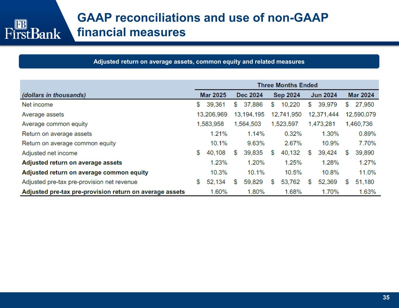 35 GAAP reconciliations and use of non-GAAP financial measures Adjusted return on average assets, common equity and related measures