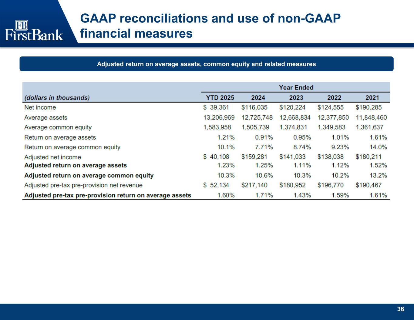 36 GAAP reconciliations and use of non-GAAP financial measures Adjusted return on average assets, common equity and related measures