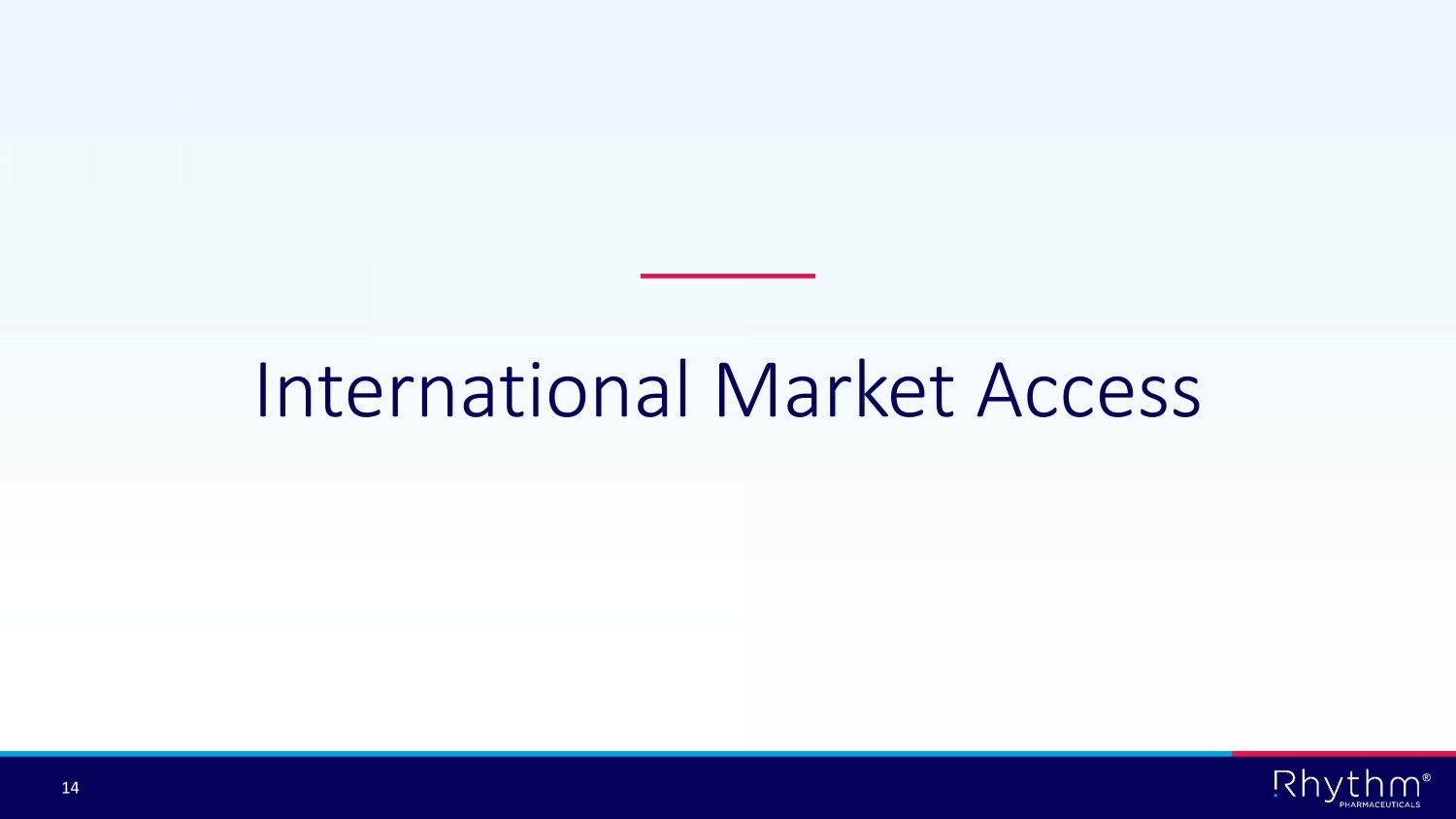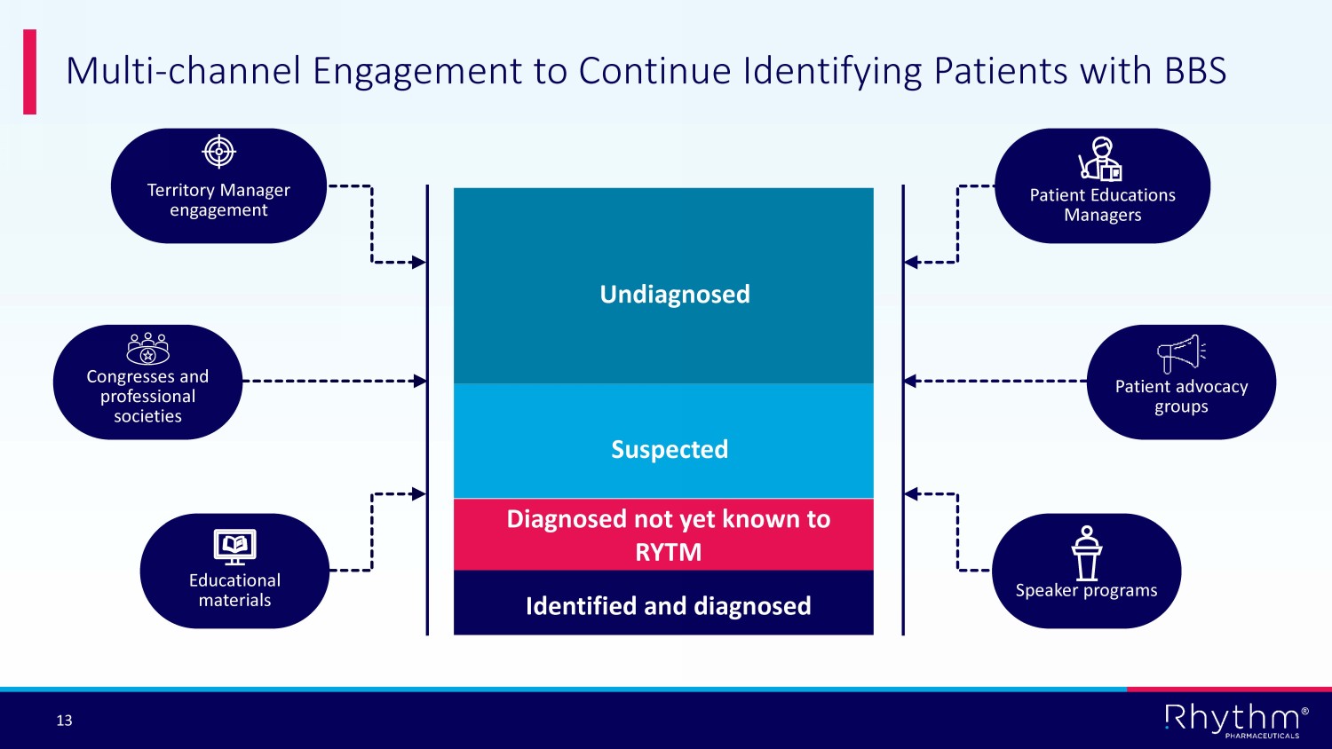 ® 13 Multi - channel Engagement to Continue Identifying Patients with BBS Identified and diagnosed Diagnosed not yet known to RYTM Suspected Undiagnosed Territory Manager engagement Congresses and professional societies Educational materials Patient Educations Managers Speaker programs Patient advocacy groups