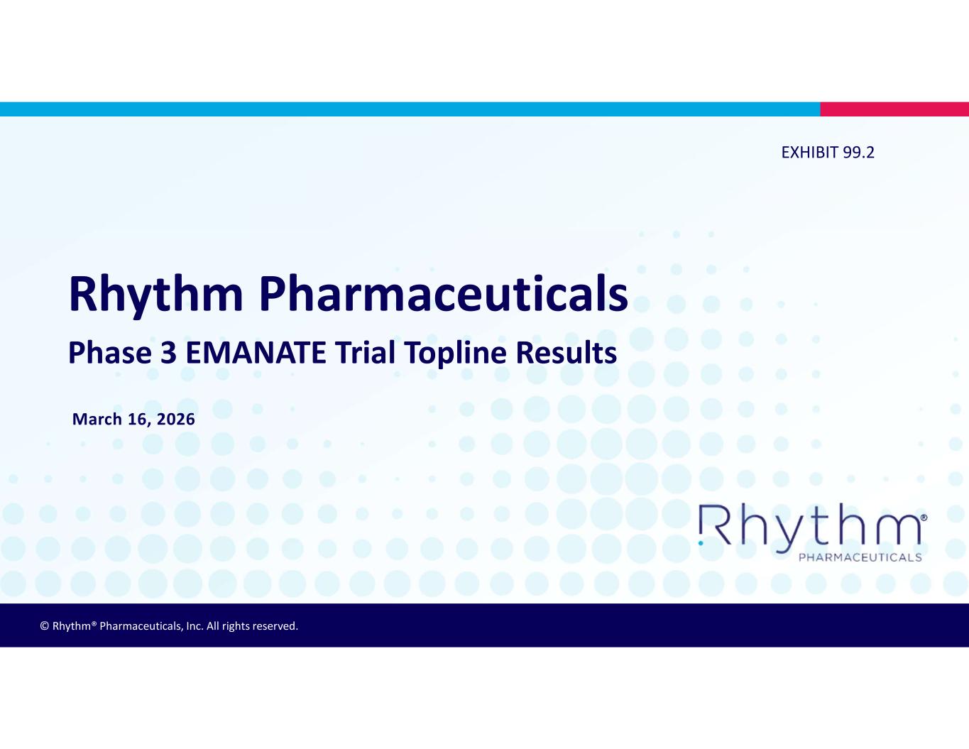 © Rhythm® Pharmaceuticals, Inc. All rights reserved. ® Rhythm Pharmaceuticals Phase 3 EMANATE Trial Topline Results March 16, 2026 EXHIBIT 99.2