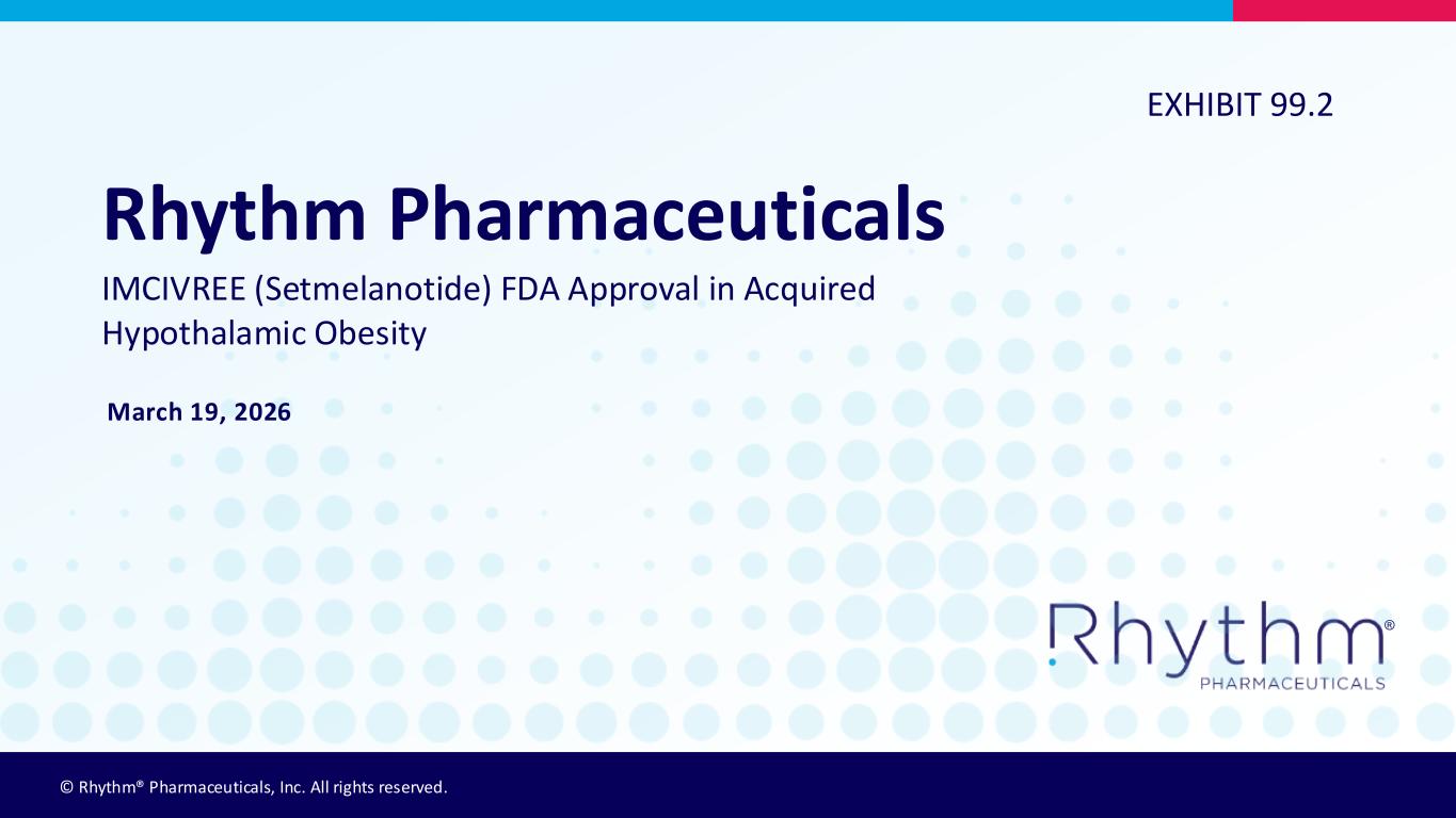 © Rhythm® Pharmaceuticals, Inc. All rights reserved. ® March 19, 2026 Rhythm Pharmaceuticals IMCIVREE (Setmelanotide) FDA Approval in Acquired Hypothalamic Obesity EXHIBIT 99.2