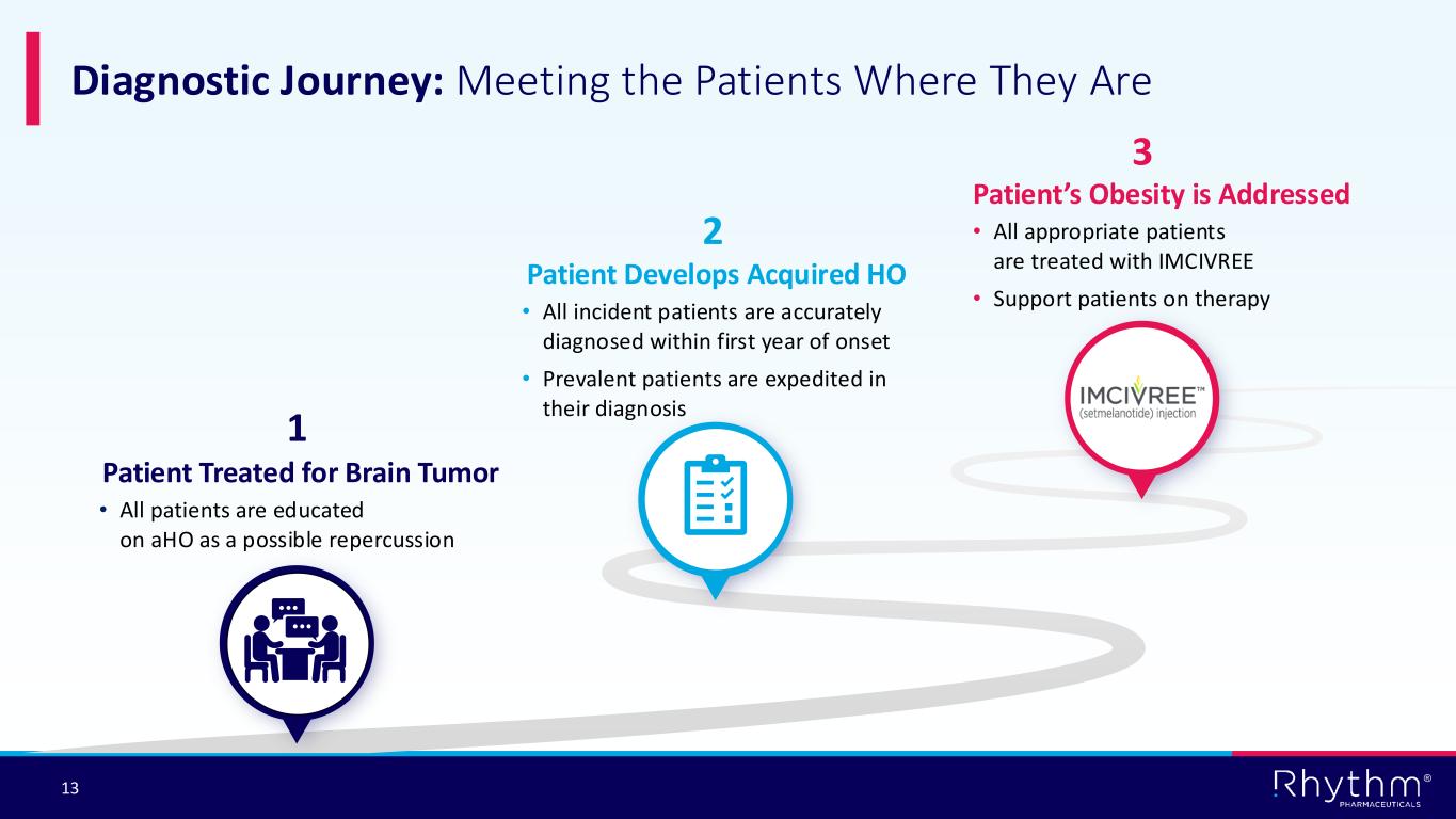 ® 13 Diagnostic Journey: Meeting the Patients Where They Are Patient Treated for Brain Tumor • All patients are educated on aHO as a possible repercussion 1 Patient Develops Acquired HO • All incident patients are accurately diagnosed within first year of onset • Prevalent patients are expedited in their diagnosis 2 Patient’s Obesity is Addressed • All appropriate patients are treated with IMCIVREE • Support patients on therapy 3