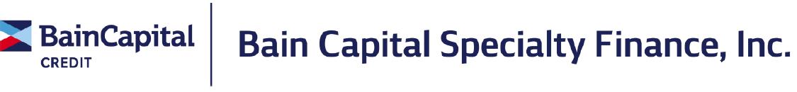 Bain Capital Specialty Finance, Inc. is an externally managed specialty finance company focused on lending to middle market companies. BCSF is managed by BCSF Advisors, LP, an SEC-registered investment adviser and a subsidiary of Bain Capital Credit, LP. Since commencing investment operations on October 13, 2016, and through September 30, 2022, BCSF has invested approximately $6.2 billion in aggregate principal amount of debt and equity investments prior to any subsequent exits or repayments. BCSF’s investment objective is to generate current income and, to a lesser extent, capital appreciation through direct originations of secured debt, including first lien, first lien/last out, unitranche and second lien debt, investments in strategic joint ventures, equity investments and, to a lesser extent, corporate bonds. BCSF has elected to be regulated as a business development company under the Investment Company Act of 1940, as amended.