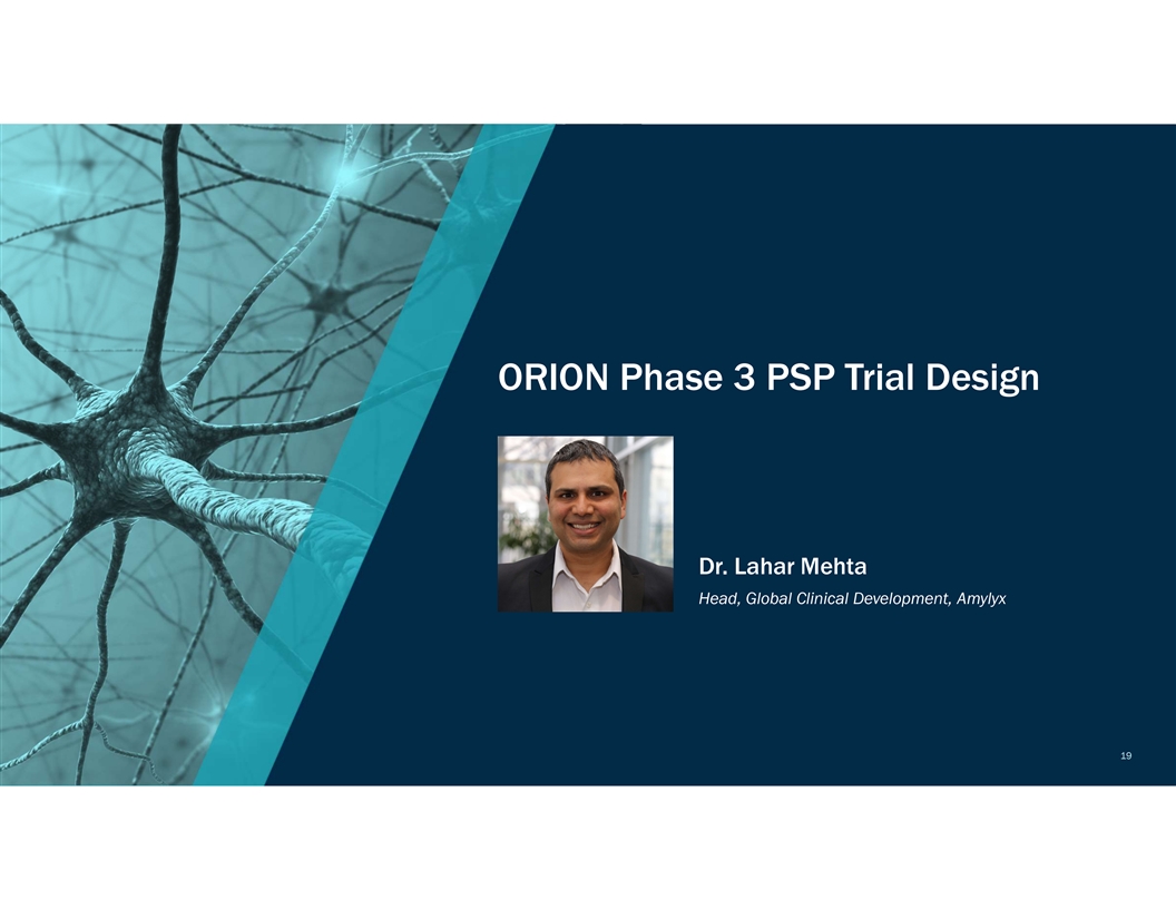 ORION Phase 3 PSP Trial Design Dr. Lahar Mehta Head, Global Clinical Development, Amylyx 19