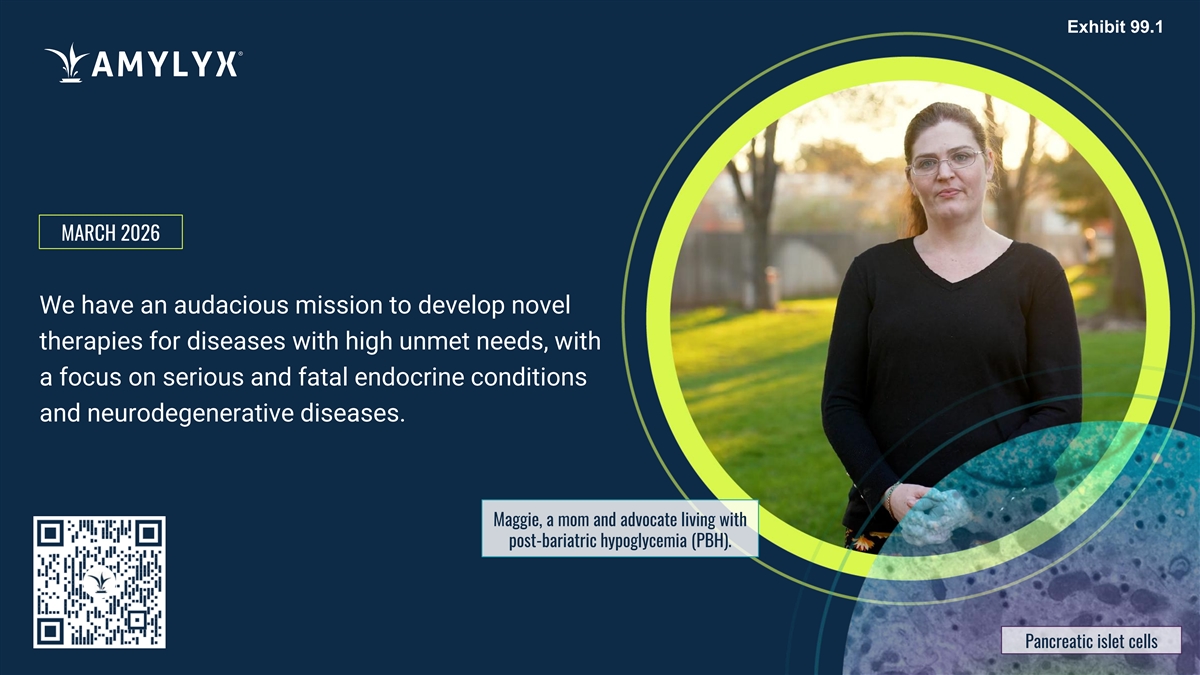 Exhibit 99.1 MARCH 2026 We have an audacious mission to develop novel therapies for diseases with high unmet needs, with a focus on serious and fatal endocrine conditions and neurodegenerative diseases. Maggie, a mom and advocate living with post-bariatric hypoglycemia (PBH). Pancreatic islet cells