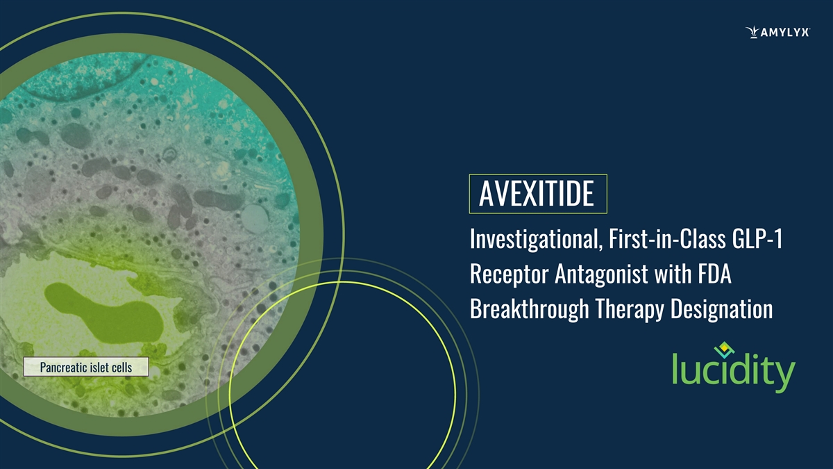 AVEXITIDE Investigational, First-in-Class GLP-1 Receptor Antagonist with FDA Breakthrough Therapy Designation Pancreatic islet cells