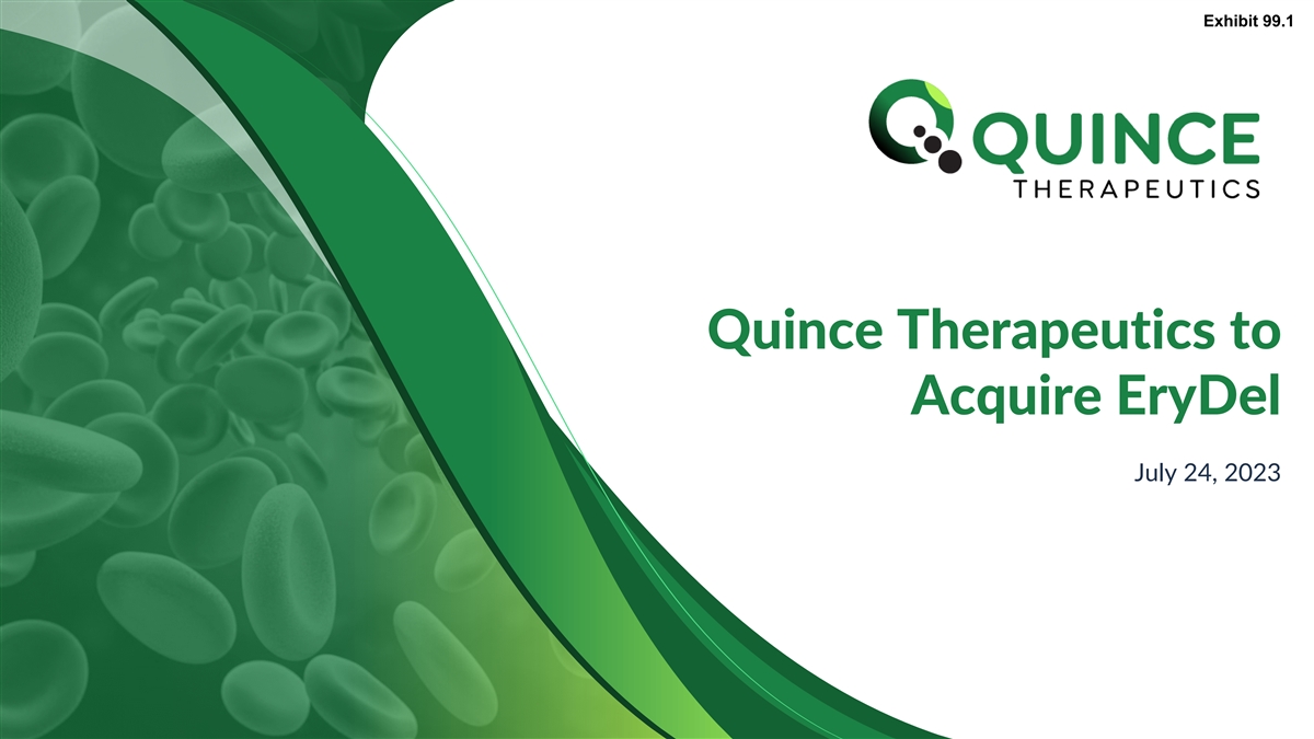 Exhibit 99.1 Quince Therapeutics to Acquire EryDel July 24, 2023