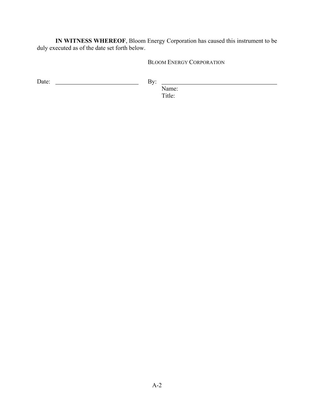 A-2 IN WITNESS WHEREOF, Bloom Energy Corporation has caused this instrument to be duly executed as of the date set forth below. BLOOM ENERGY CORPORATION Date: By: Name: Title: