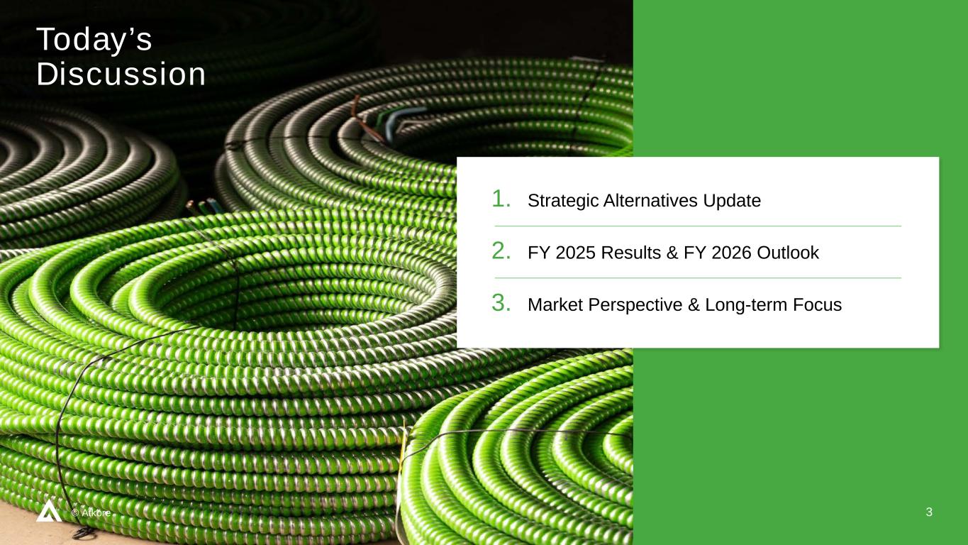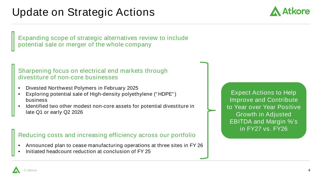3© Atkore Today’s Discussion 1. Strategic Alternatives Update 2. FY 2025 Results & FY 2026 Outlook 3. Market Perspective & Long-term Focus