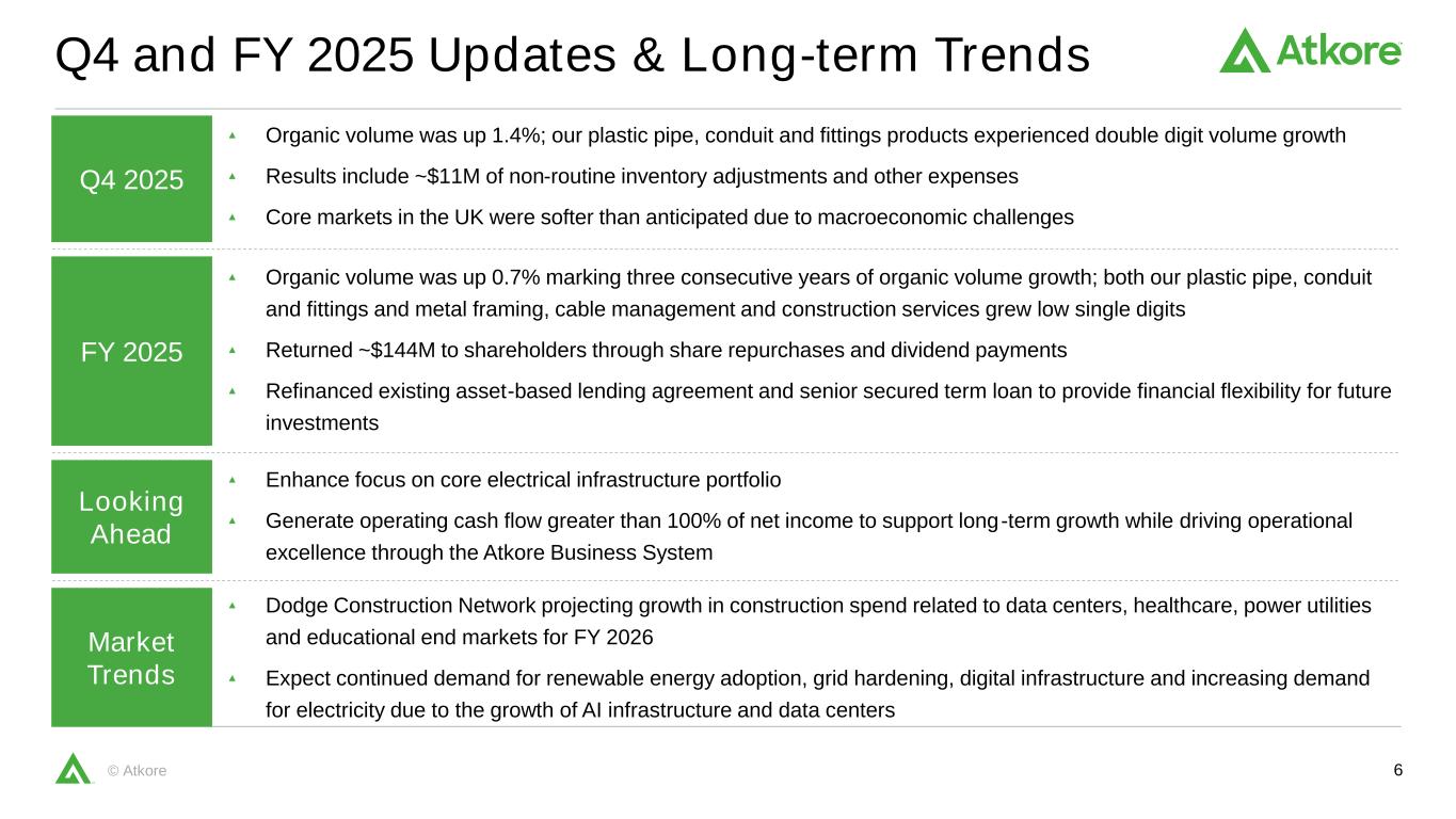 5© Atkore FY 2025 Results & FY 2026 Outlook