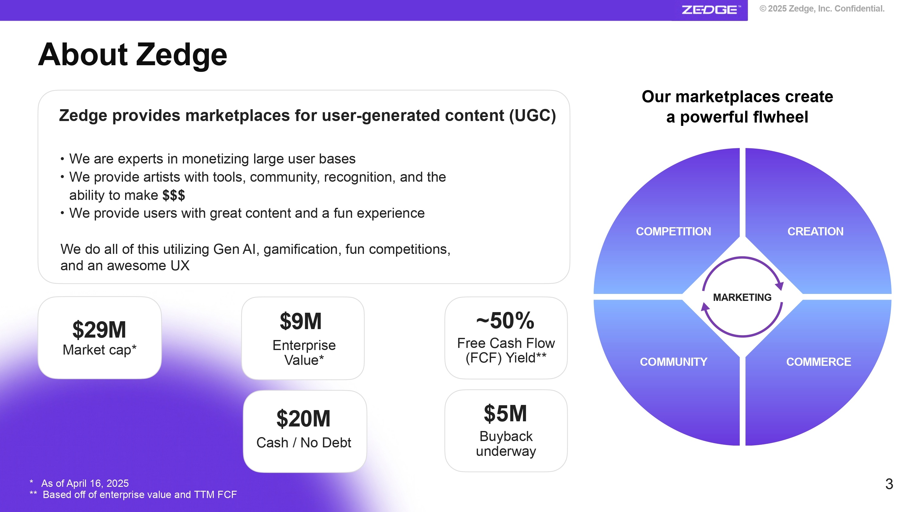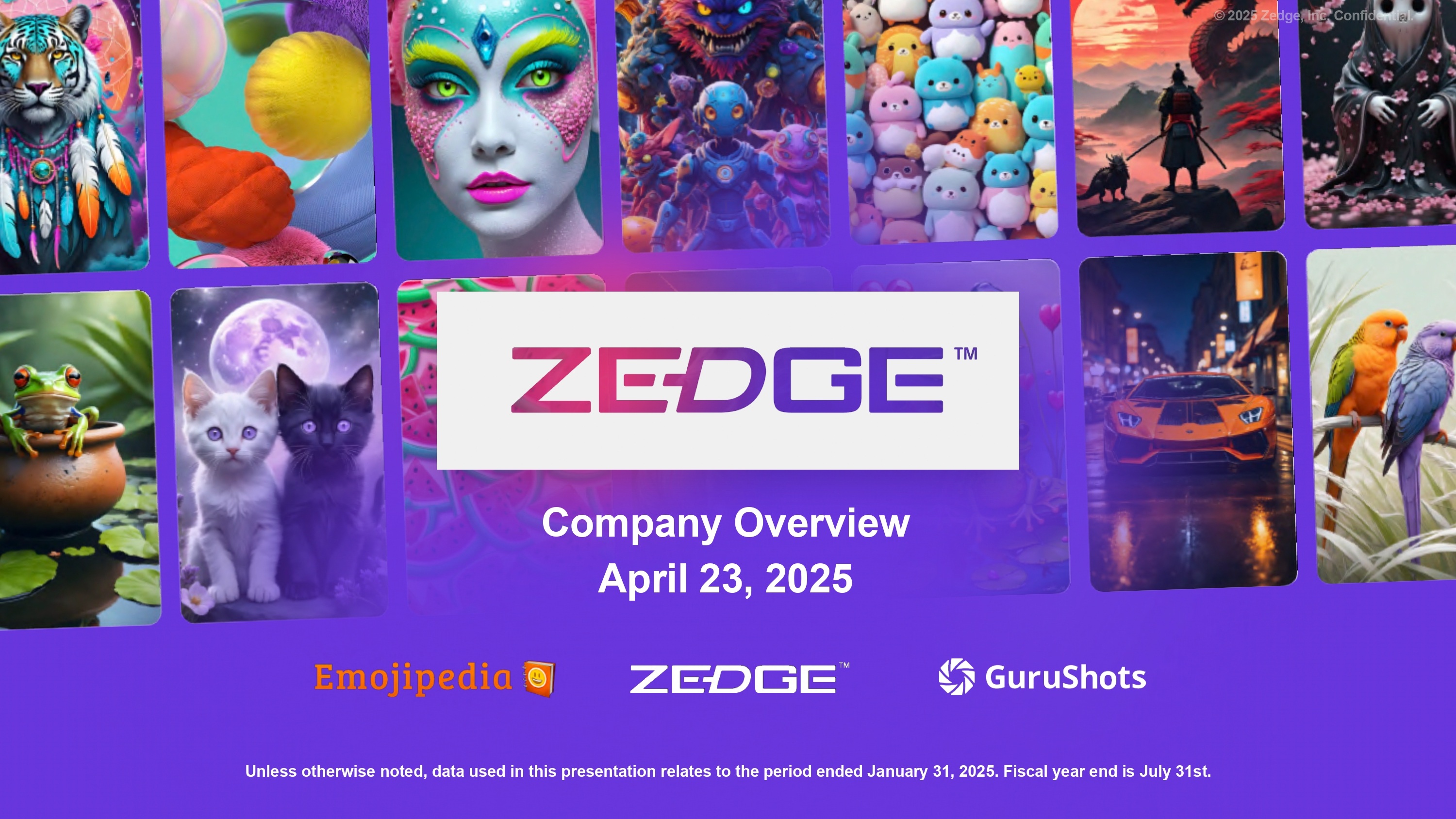 © 2025 Zedge, Inc. Confidential. Company Overview April 23, 2025 Unless otherwise noted, data used in this presentation relates to the period ended January 31, 2025. Fiscal year end is July 31st.