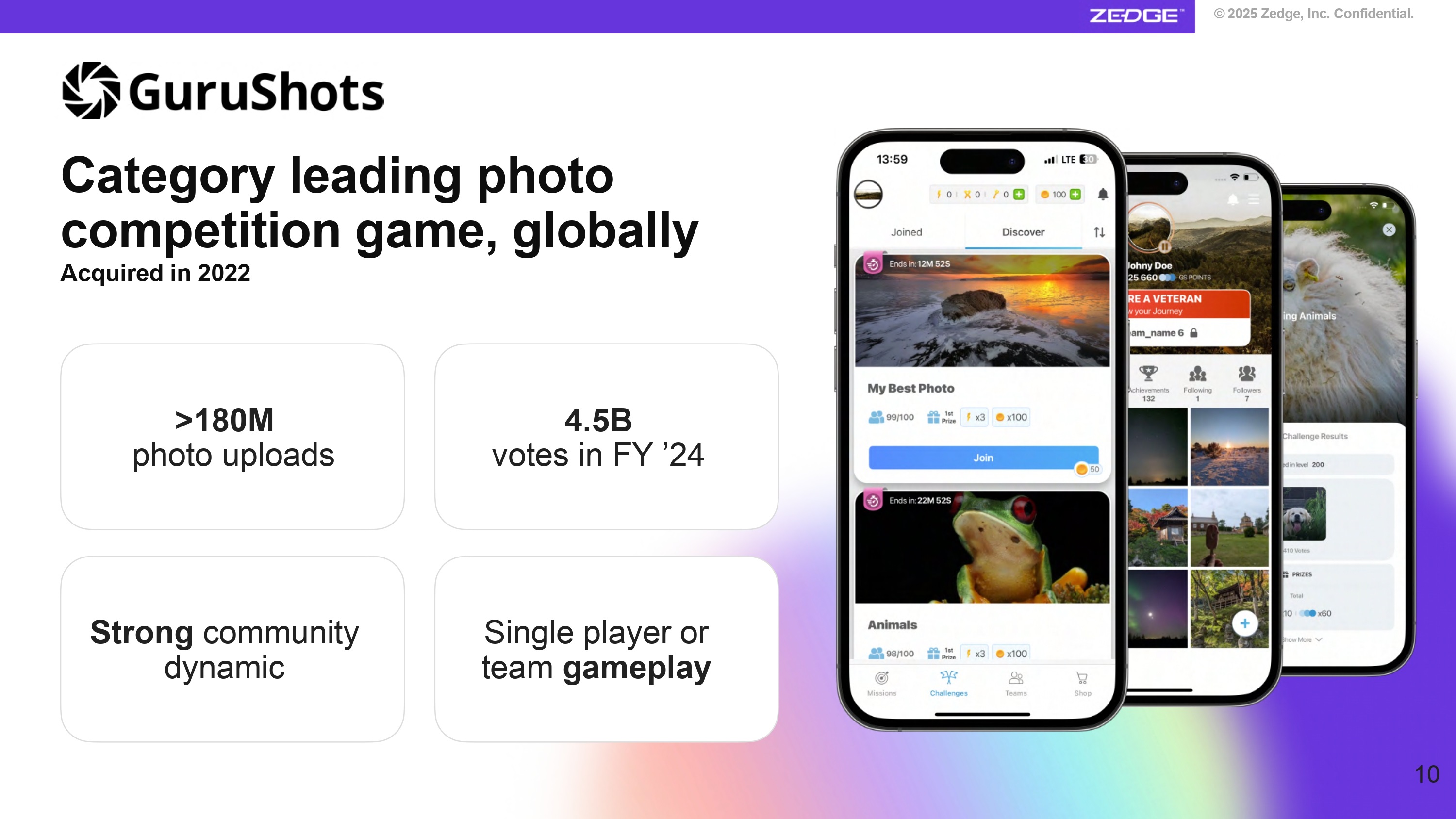 © 2025 Zedge, Inc. Confidential. 10 >180M photo uploads 4.5B votes in FY ’24 Strong community dynamic Single player or team gameplay Category leading photo competition game, globally Acquired in 2022